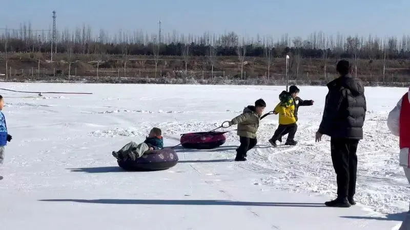 温室之外,则是另一番银装素裹的冰雪天地。十余种趣味冰雪项目错落分布,满足不同年龄段游客的游玩需求。冰上坦克车轰鸣驰骋,带来速度与激情的双重体验;冰上自行车、碰碰车童趣十足,大人孩子组队竞技,欢声笑语回荡在冰面之上;经典的冰滑梯、雪地转转、雪地寻宝等项目,让游客尽情释放冬日活力。“我跟爸爸妈妈玩了冰上碰碰车和雪地转转,特别是冰滑梯,滑下来的时候风呼呼吹过,特别刺激。”10岁的小朋友王梓轩刚从冰滑梯上下来,脸颊通红却难掩兴奋。园区精心规划游览动线,将种植区、冰雪娱乐区、萌宠互动乐园和农耕文化长廊有机串联,为游客提供集采摘、娱乐、研学于一体的一站式体验。