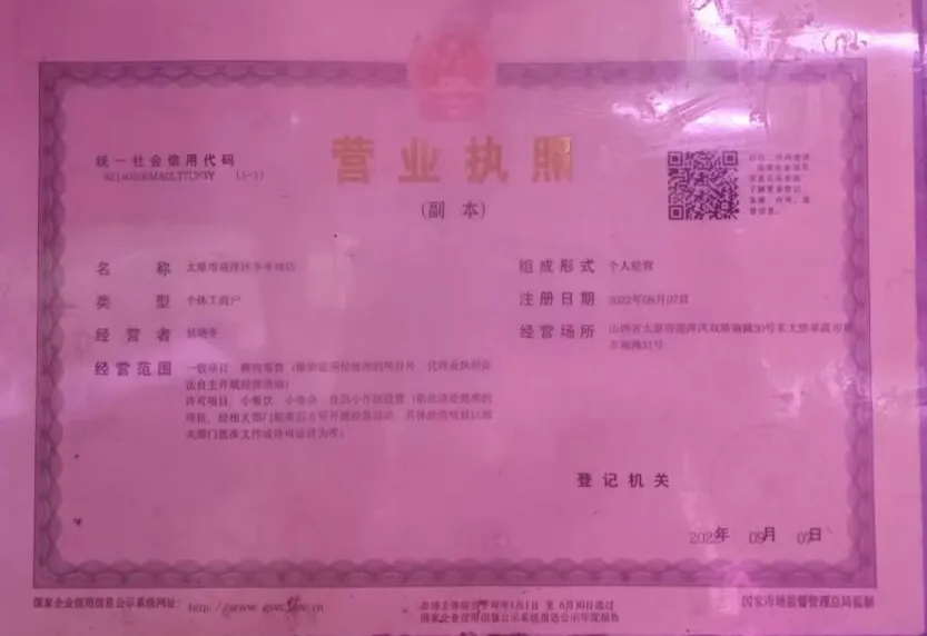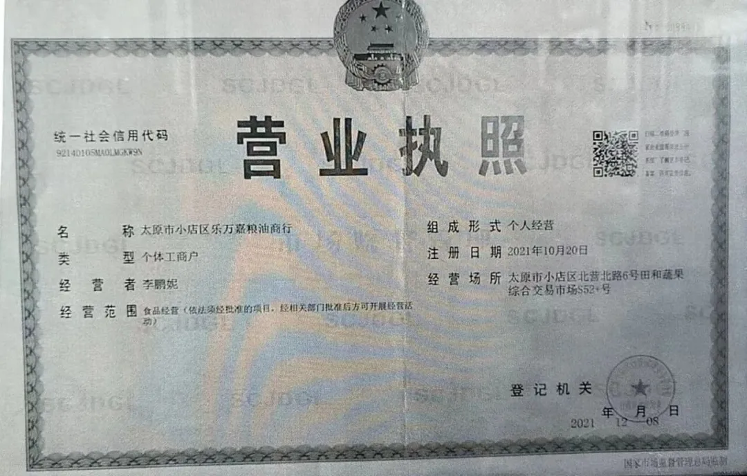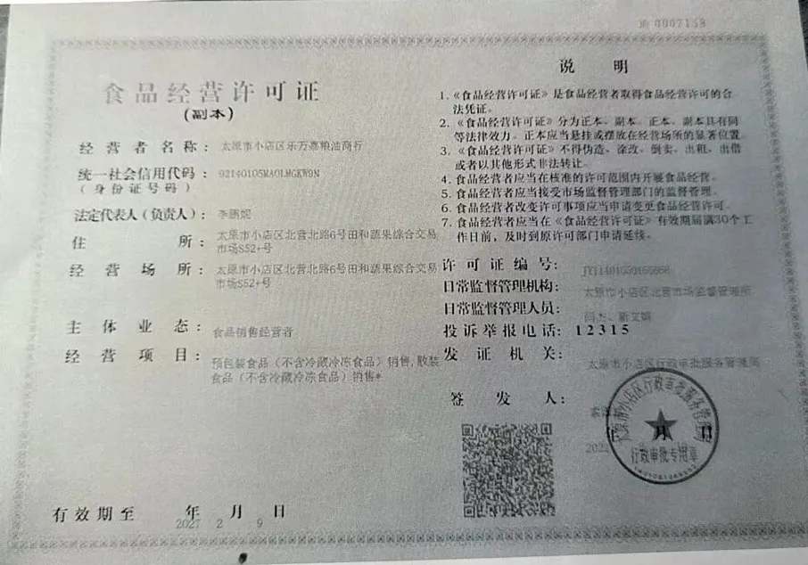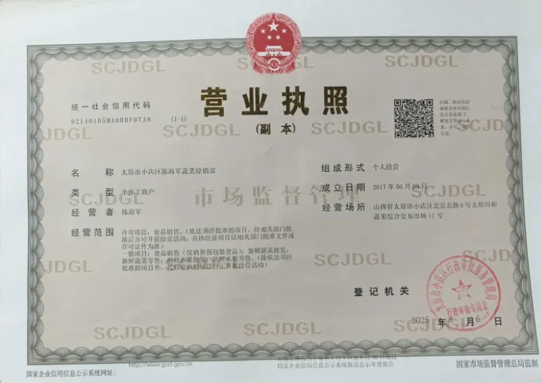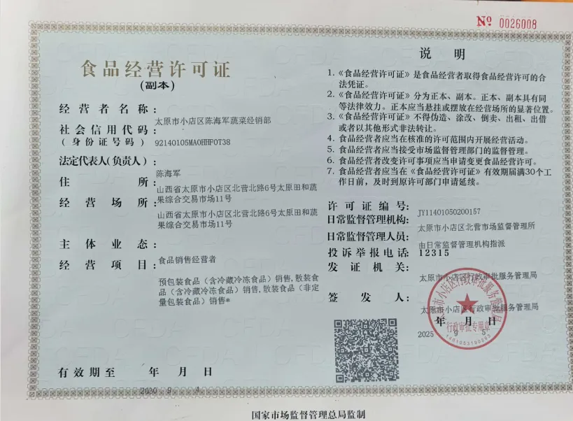 食材供应商相关营业执照