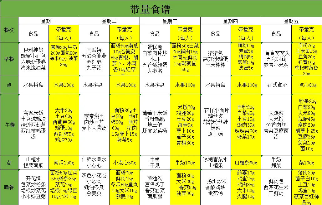 每周带量食谱