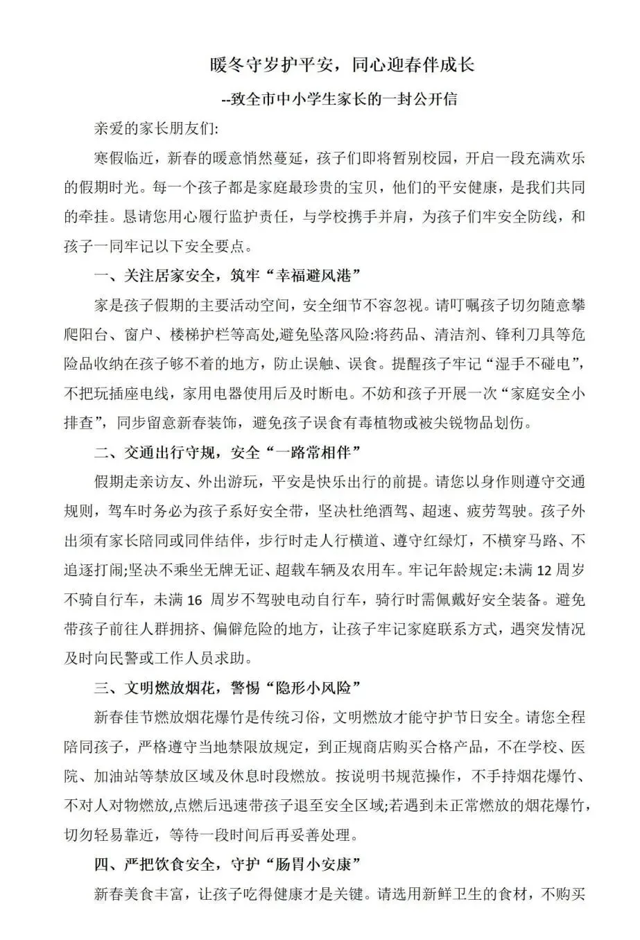 龙马精神焕新颜,笃行致远启华章。在这岁序更迭、万象更新的美好时节,孩子们即将开启期盼已久的寒假生活。寒假,是孩子们沉淀思考、蓄力成长的宝贵阶段,亦是家庭亲情交融、言传身教的温馨时光。
