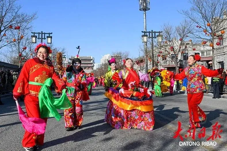 活动内容:依托千灯耀王城、百戏乐新春、万福祈安康三大板块营造梦幻光影氛围,升级《天下大同》实景演艺,开展非遗火焰秀、街头杂耍、巡游送福互动等活动。