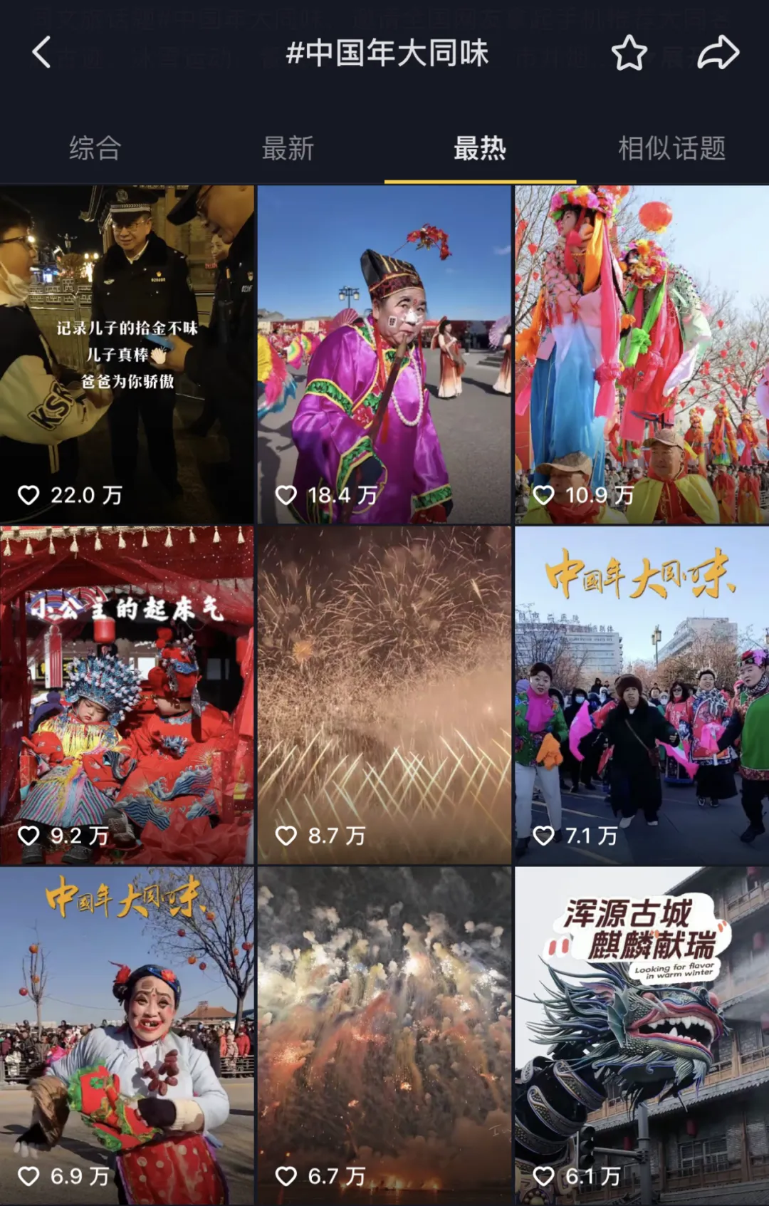 活动内容:以春节、元宵节文化系列活动为契机,面向全国发布大同文旅话题 #中国年大同味,通过发起短视频大赛的方式,邀请京津冀晋蒙的文旅达人通过发布游记、攻略、随手拍等视频,推荐大同旅游胜地、餐饮美食、年味生活等,赢取大赛奖金,吸引全国游客来大同过地道中国年。