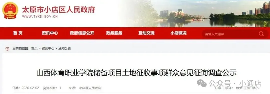 根据国家法律法规和政策的规定,现对小店区山西体育职业学院储备项目土地征收事项群众意见征询工作进行公示,收集和征求公众关于对征地事项的意见和建议。