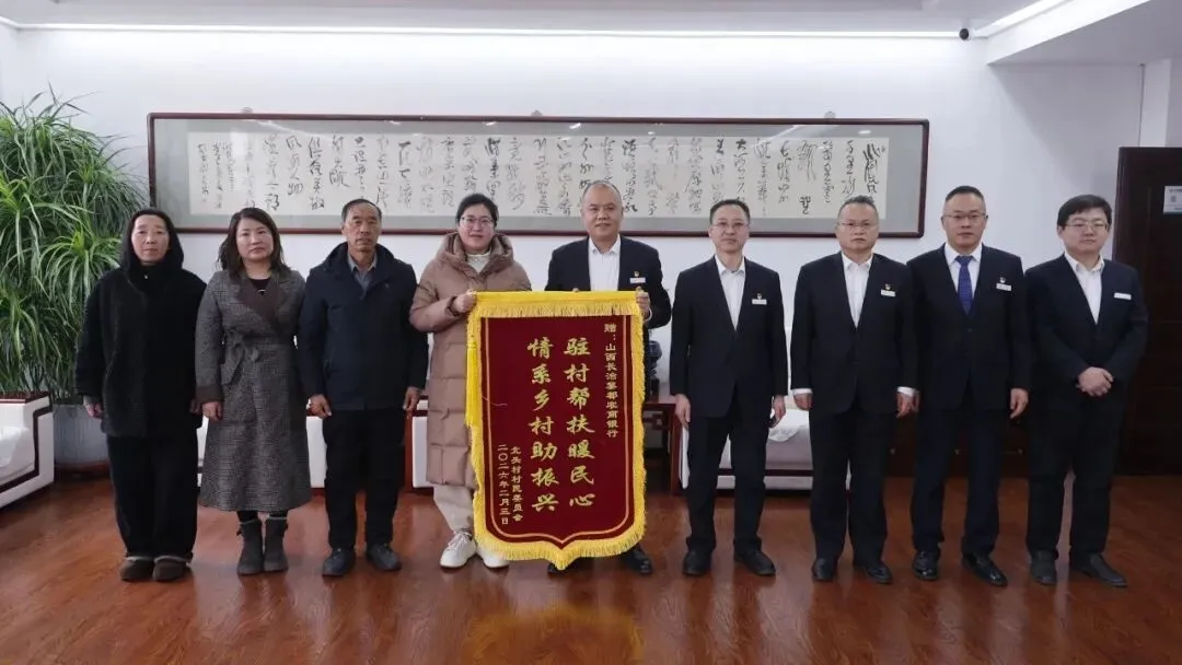 2月3日,上党区荫城镇北头村村支“两委”代表带着全体村民的深情厚谊,将一面绣有“驻村帮扶暖民心 情系乡村助振兴”的锦旗送到黎都农商行,当面致谢该行多年来在基础设施改善、民生保障、产业发展等方面给予的全方位支持,锦旗上的鎏金大字,映照出银村同心、携手共进的鱼水深情。(张君)