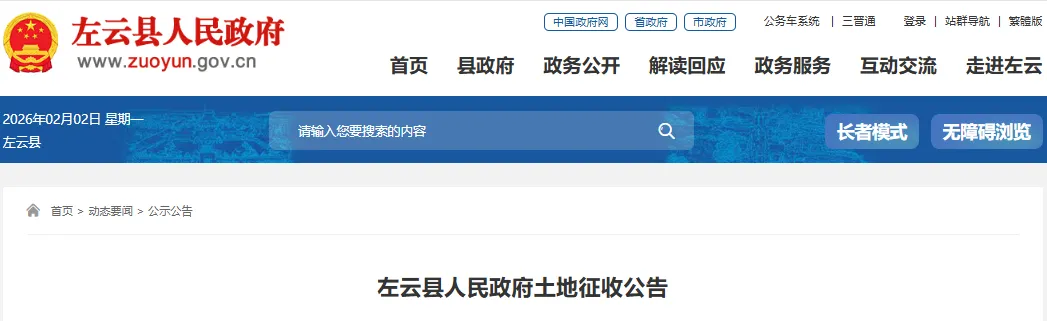 经山西省人民政府批准,于2026年1月14日以晋政地字〔2026〕10号文同意征收大同市左云县三屯乡南辛庄村、张家场乡南周窑村、马道头乡庄家店村1个乡镇3个行政村集体农用地5.2222公顷。现根据《中华人民共和国土地管理法》第47条和《中华人民共和国土地管理法实施条例》第31条的有关规定将征收土地方案的相关内容公告如下: