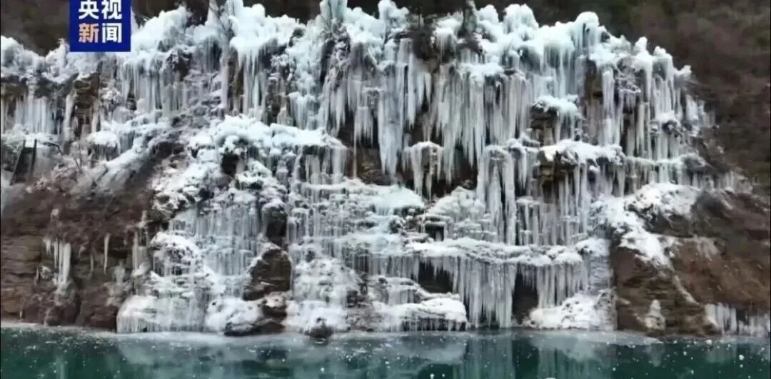 与层层叠叠的冰挂冰柱