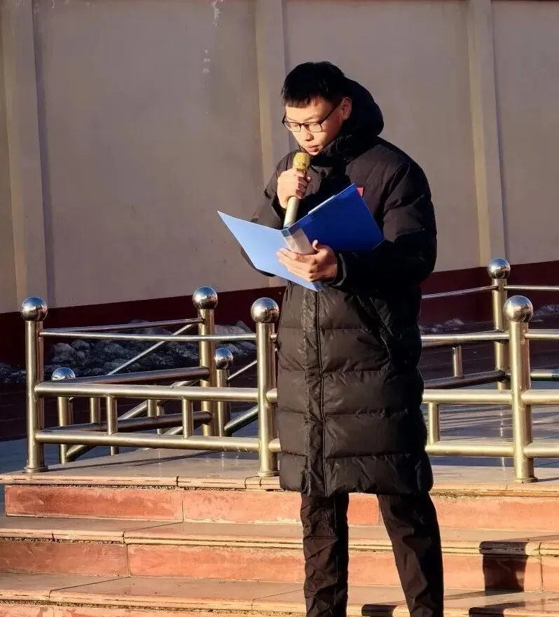 升旗礼毕,古典式摔跤队段依邯同学代表全体运动员进行了题为《迎接寒假,喜迎新春》的国旗下讲话。他回顾了一学期以来运动员们的赛场拼搏与成长收获。面对即将到来的假期,他向大家发出倡议:安全为重,警钟长鸣;孝亲敬老,传承美德;劳逸结合,蓄力前行。他呼吁运动员们在春节期间享受团圆、感受年味的同时,不忘合理规划、坚持学习运动、参与实践,让假期成为充电赋能、传承文化、积蓄力量的新起点,以饱满的状态迎接新学期的挑战。