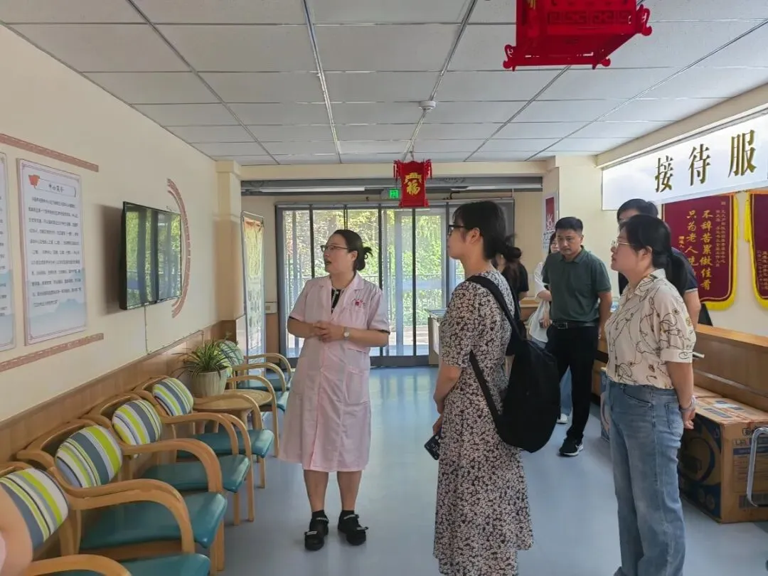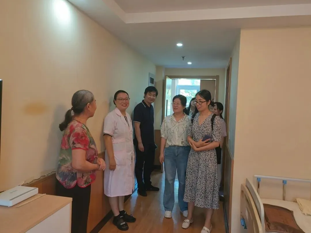 2024年8月5日上午,山西太原财经大学调研组一行在高新区社发局刁力处长及兴园中心事业部蒋华燕部长等相关负责人的陪同下,深入合肥九久夕阳红新海护理院有限公司承接的兴园养老服务中心开展实地参观调研。