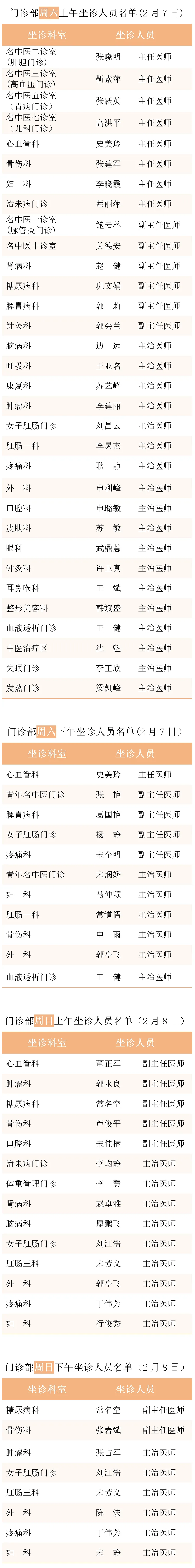 >长治市中医医院“无假日门诊”医生出诊信息(2026.2.7~2.8)