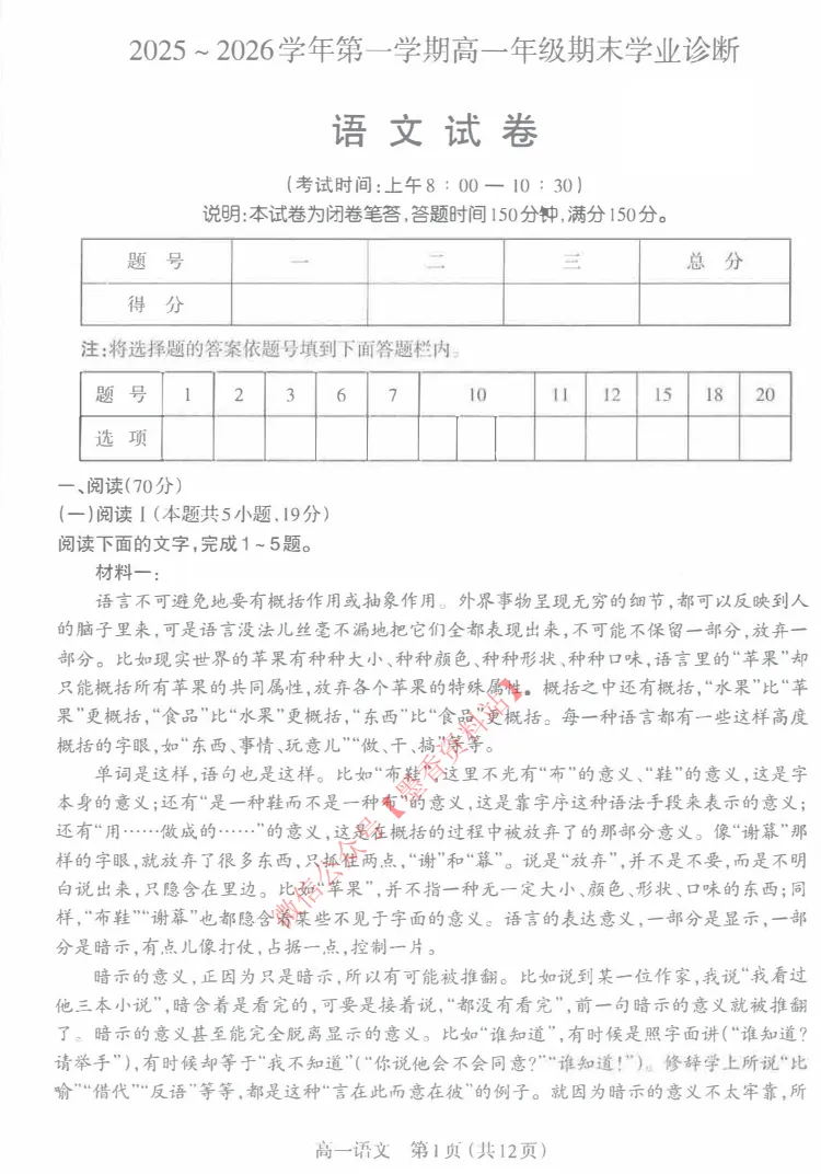 1.(3分)B(“其中暗示义的表达比字面义更为重要”错,无中生有)2.(3分)A(“诗歌语言都是依靠暗示传情达意”错,以偏概全)