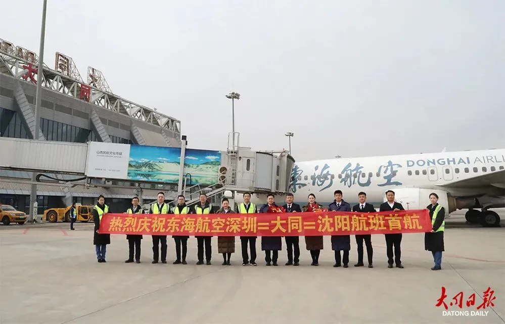 2月3日13∶05,一架东海航空DZ6231航班平稳降落在大同云冈国际机场,标志着春运新增“深圳⇌大同⇌沈阳”航线顺利首航。