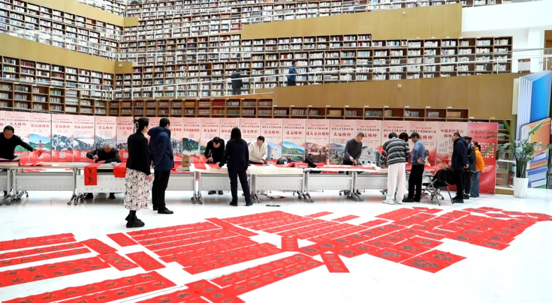 1月13日至17日在一楼大厅、北魏文献区举办“墨韵迎新春 书香送万福”春联惠民活动,特邀12位书法老师分批次现场挥毫,书写春联、福字。