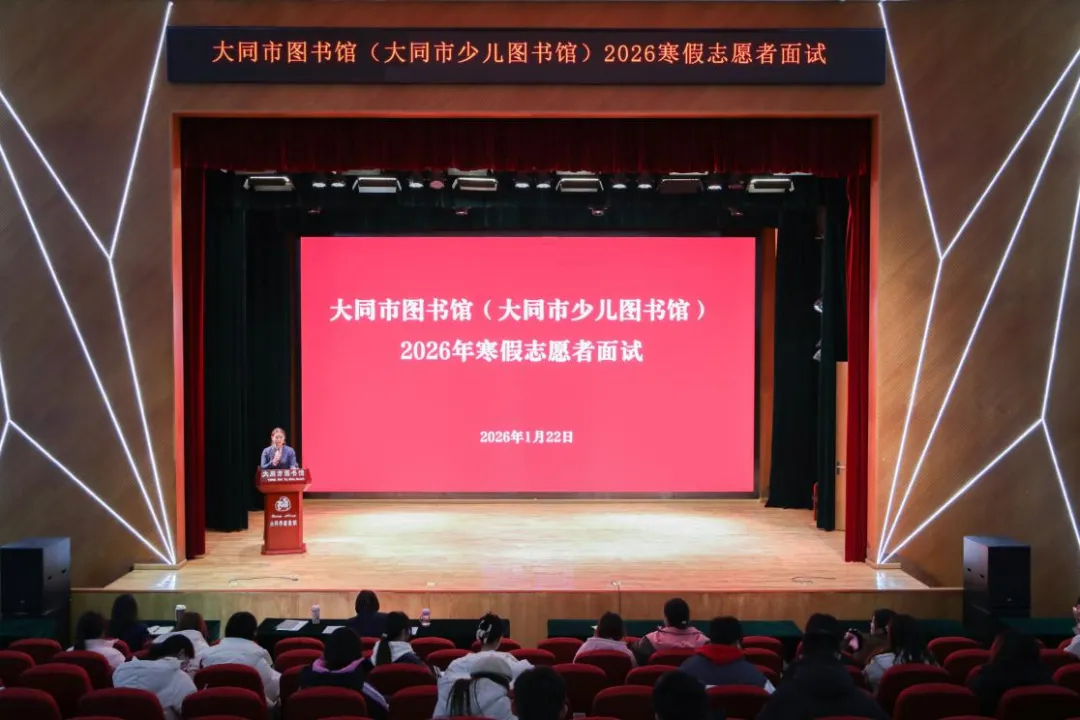 春节将至,大同市图书馆(大同市少儿图书馆)开展了2026年寒假公共文化志愿服务活动,共有238人报名。经过面试选拔,一批高校优秀青年志愿者脱颖而出,正式加入志愿服务队。本次志愿服务活动共分三期,第一期41名志愿者已于1月24日全部到岗,开展了为期10天的志愿服务,共计服务读者22325人次。