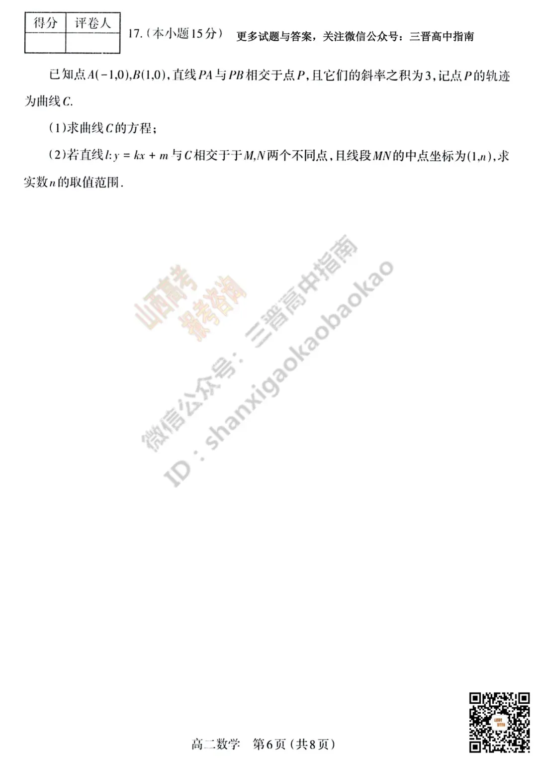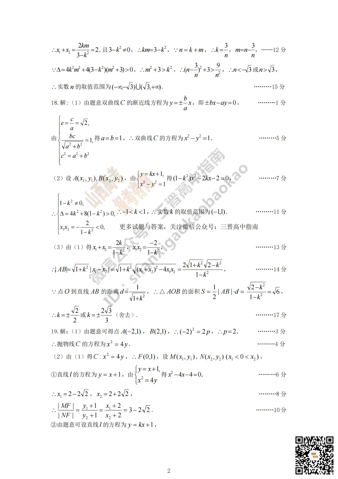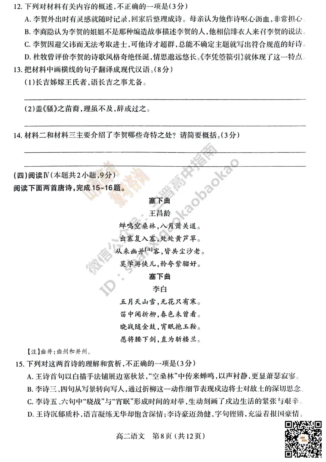 如需获取各科试题与答案的高清PDF打印文档大家可以添加 冯凌彤老师 为好友,私聊发送关键词太原高二2月,即可马上获取此次考试全部资料!