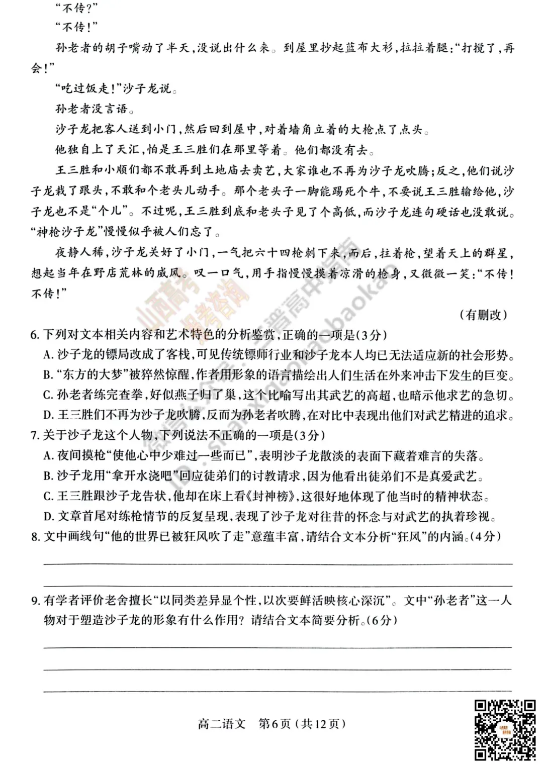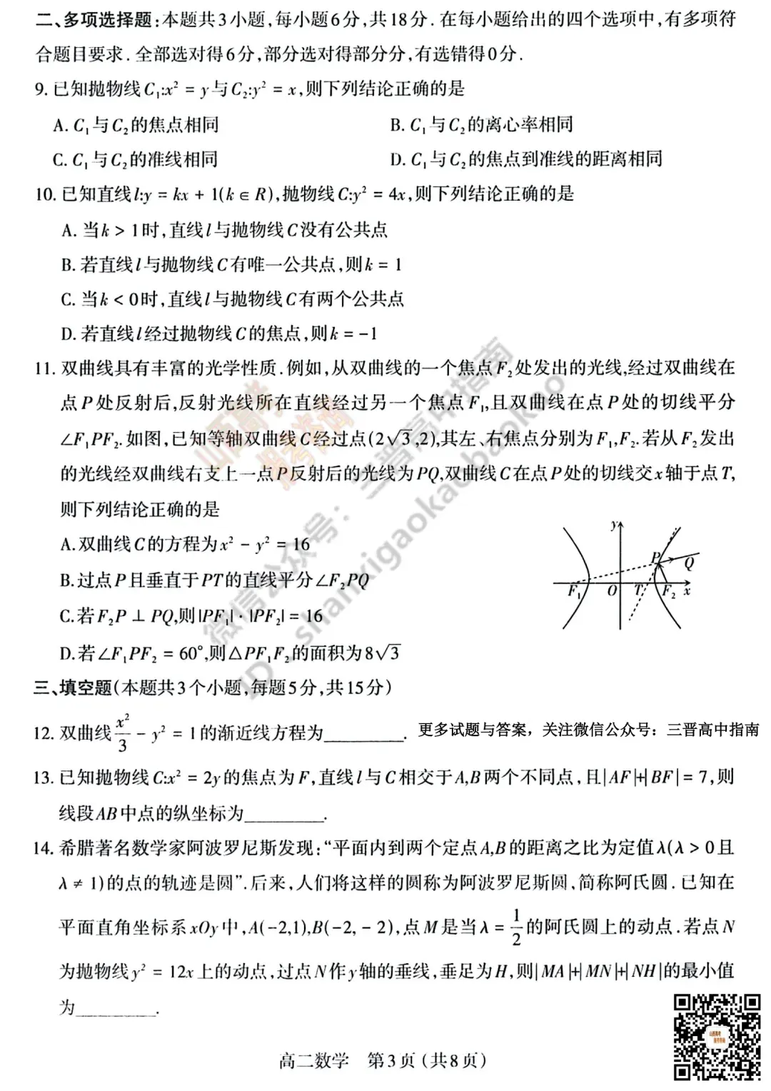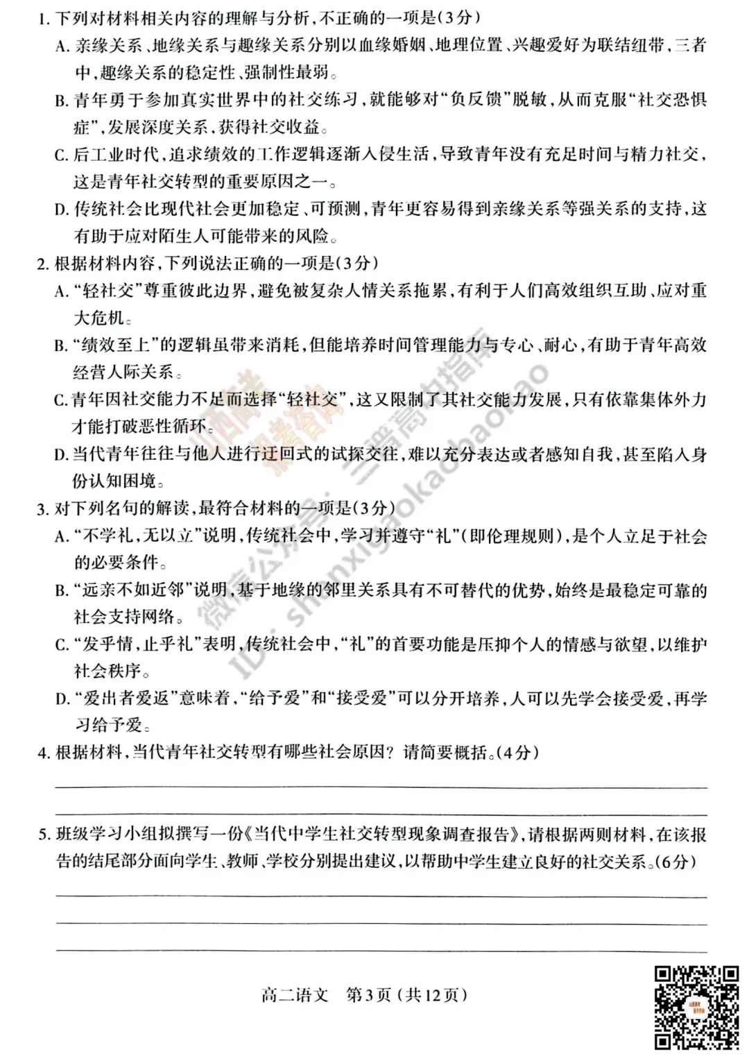 如需获取各科试题与答案的高清PDF打印文档大家可以添加 冯凌彤老师 为好友,私聊发送关键词太原高二2月,即可马上获取此次考试全部资料!