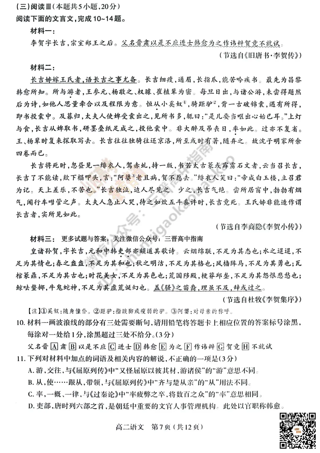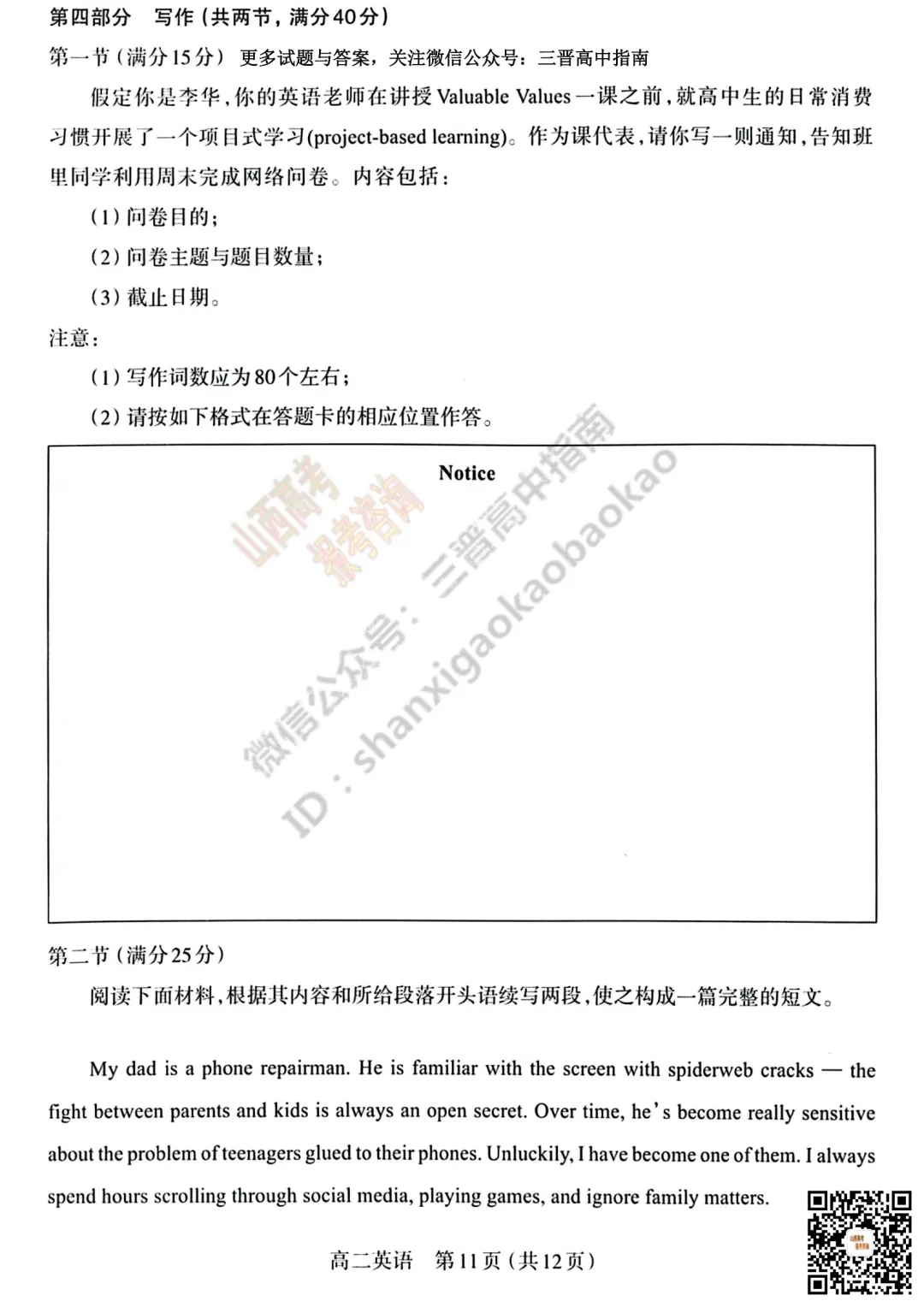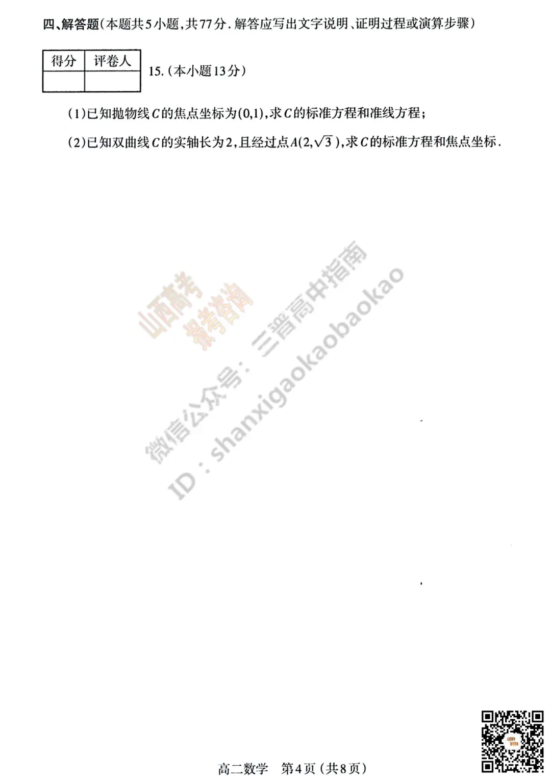 回复“高考真题”,领取2010年-2025年山西高考真题与答案(高清打印版)