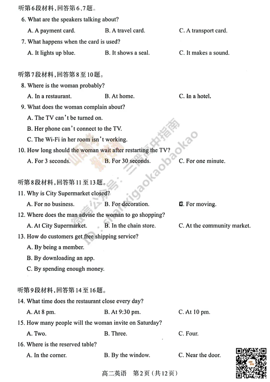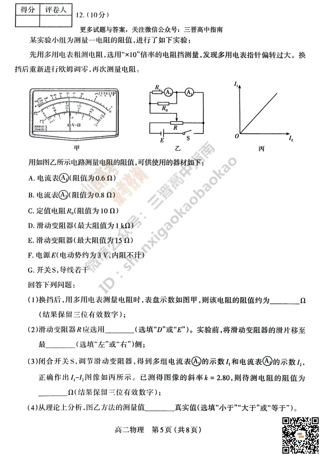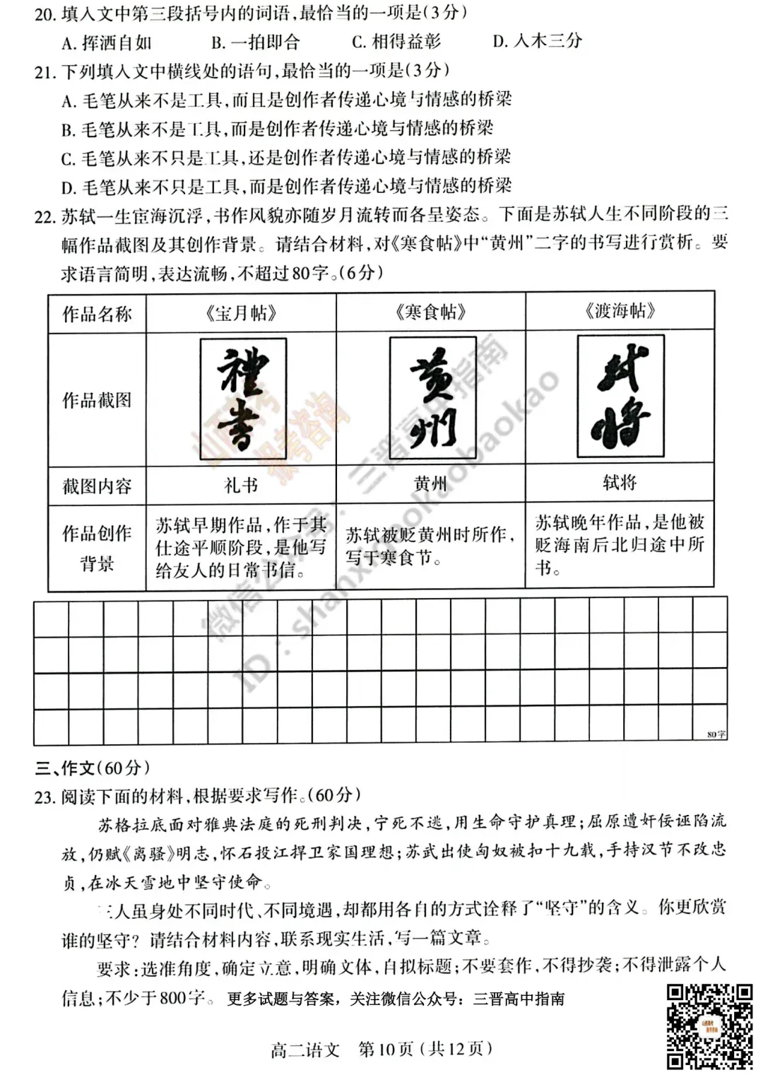 回复“高考真题”,领取2010年-2025年山西高考真题与答案(高清打印版)