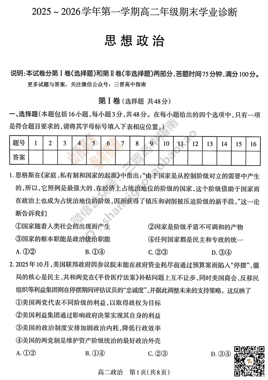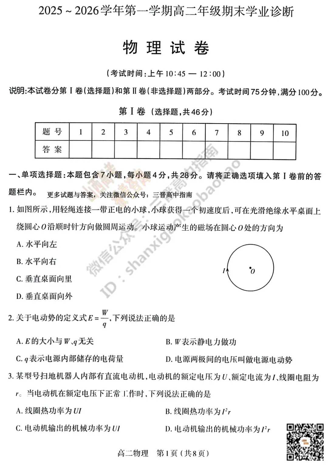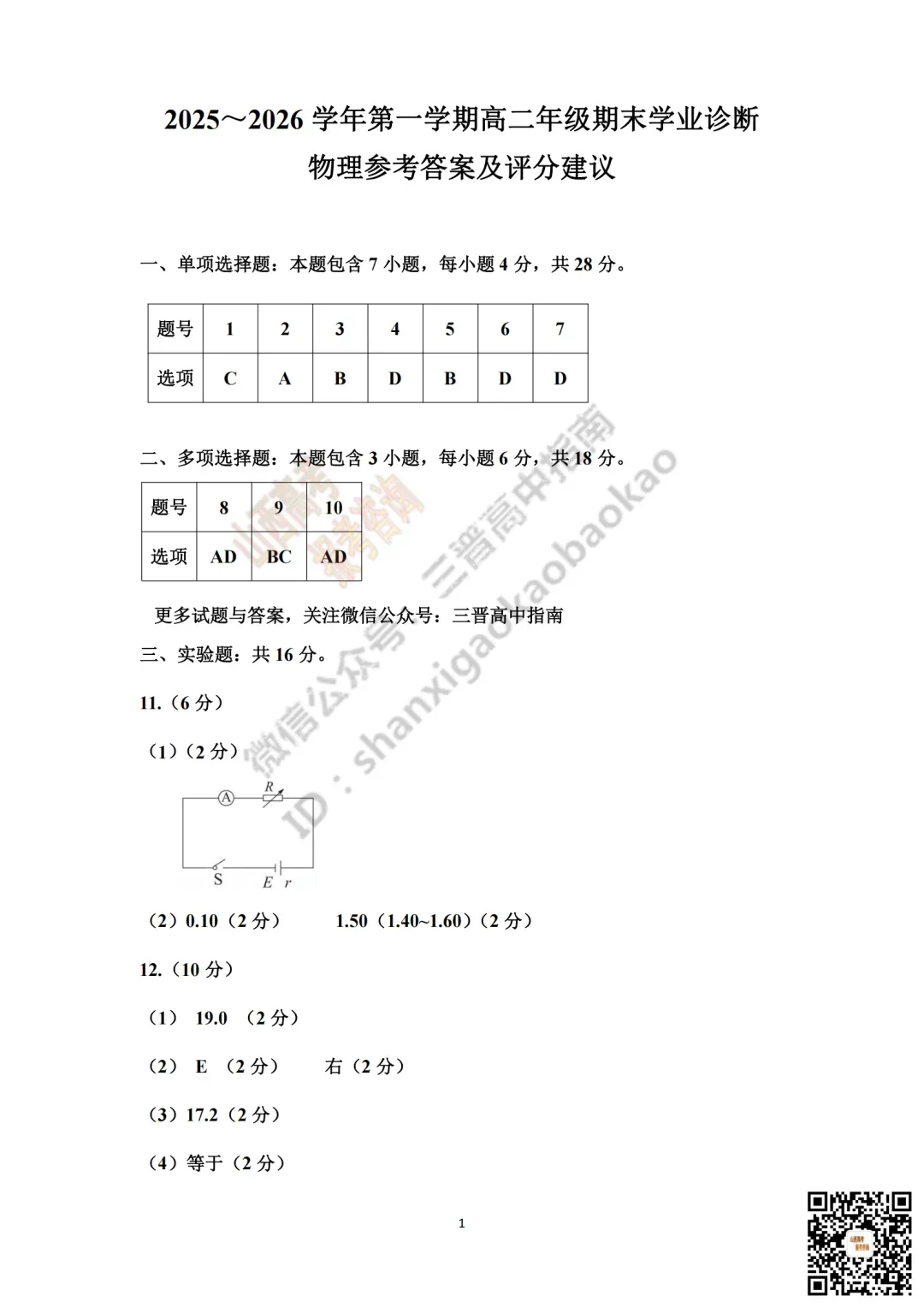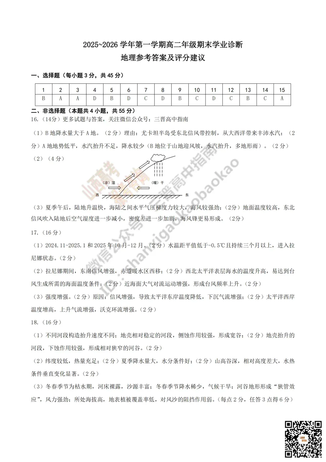 当前位置:首页>太原>太原市2026高二第一学期期末学业诊断全科试题与答案!附送高清打印版