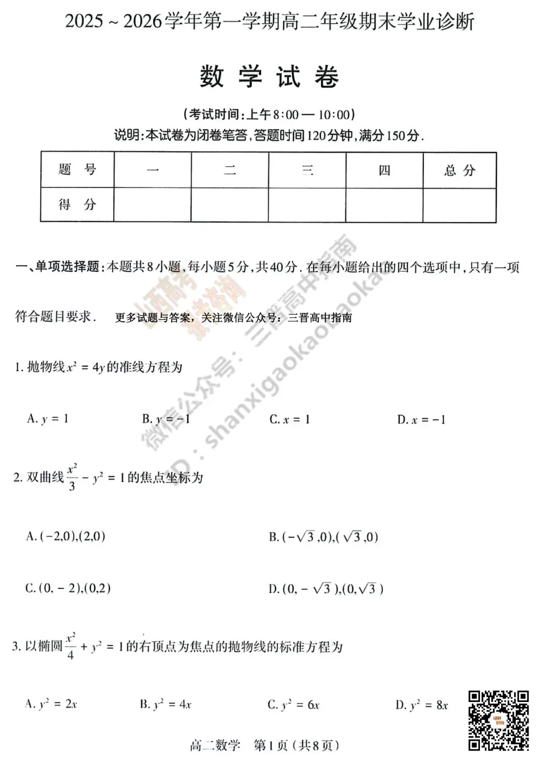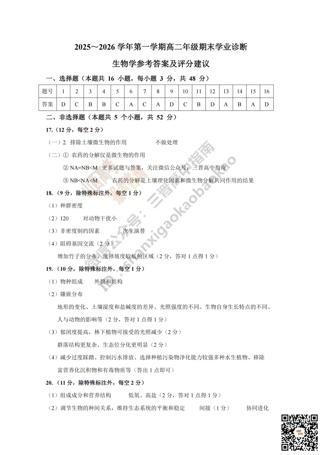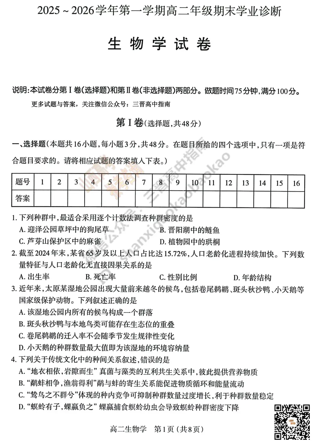 当前位置:首页>太原>太原市2026高二第一学期期末学业诊断全科试题与答案!附送高清打印版