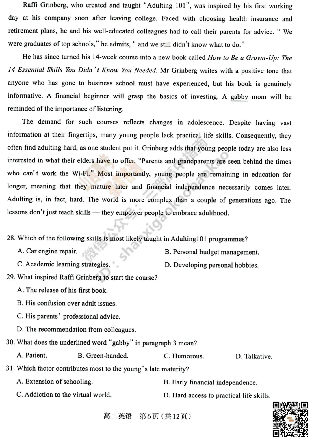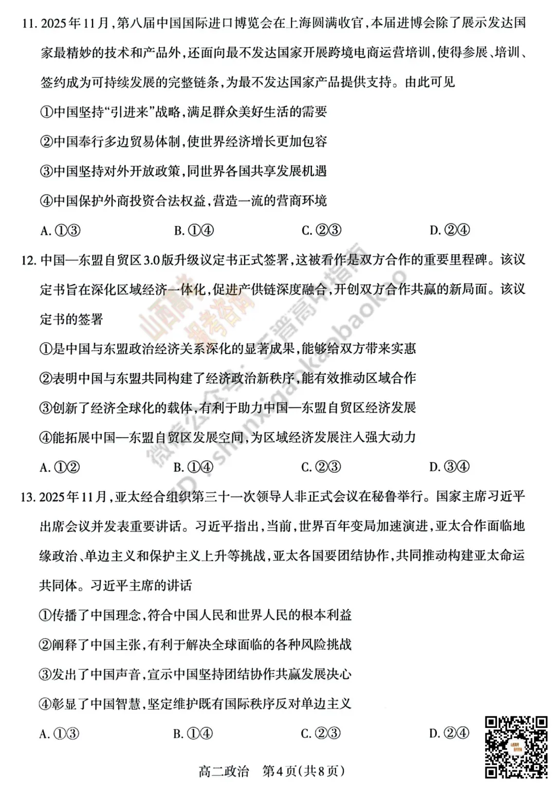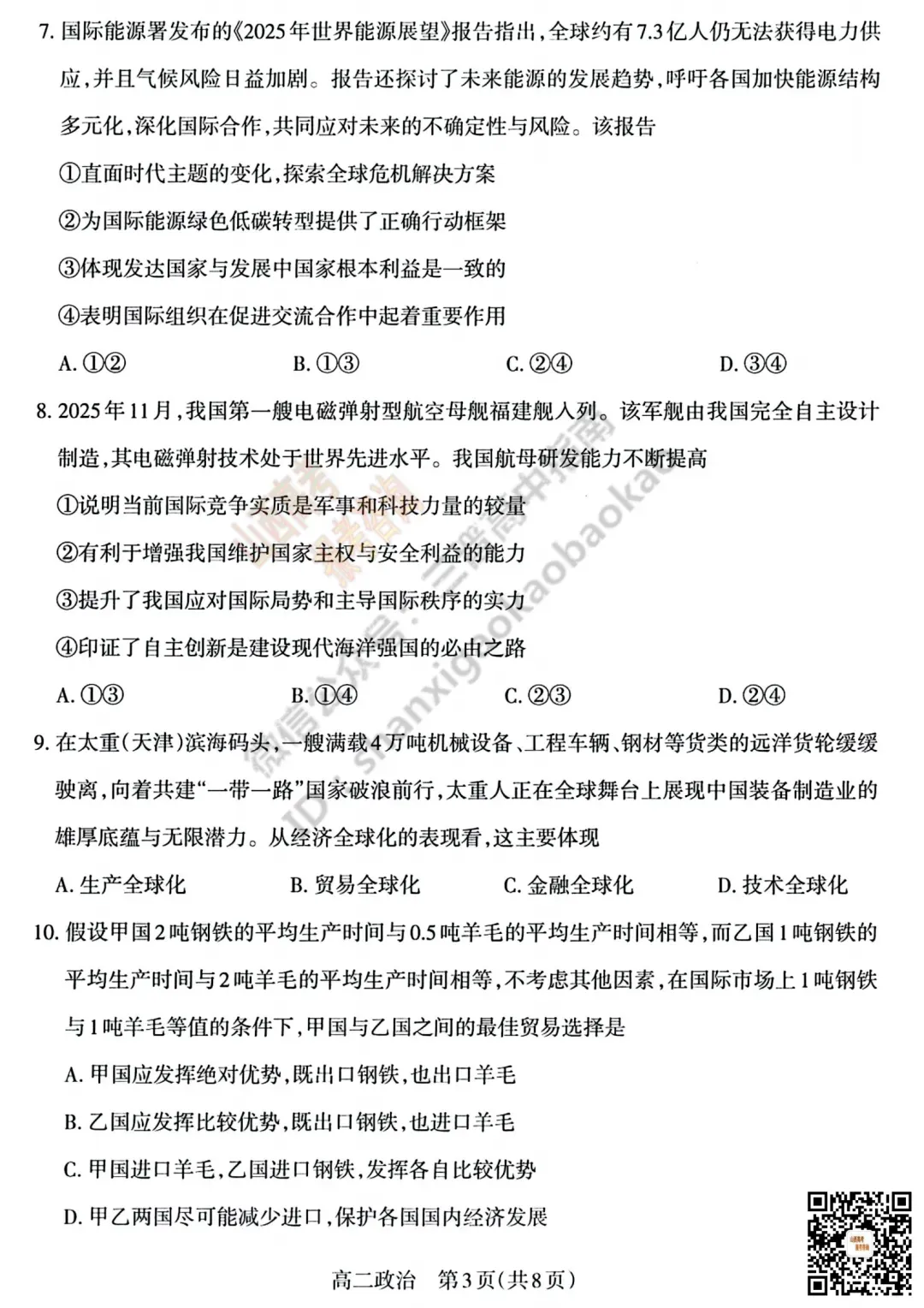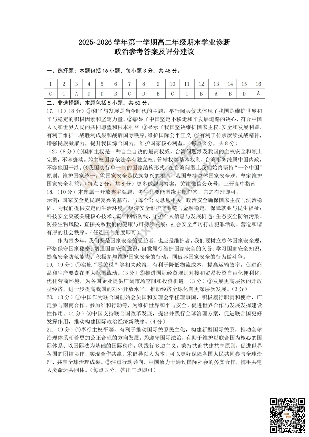 当前位置:首页>太原>太原市2026高二第一学期期末学业诊断全科试题与答案!附送高清打印版