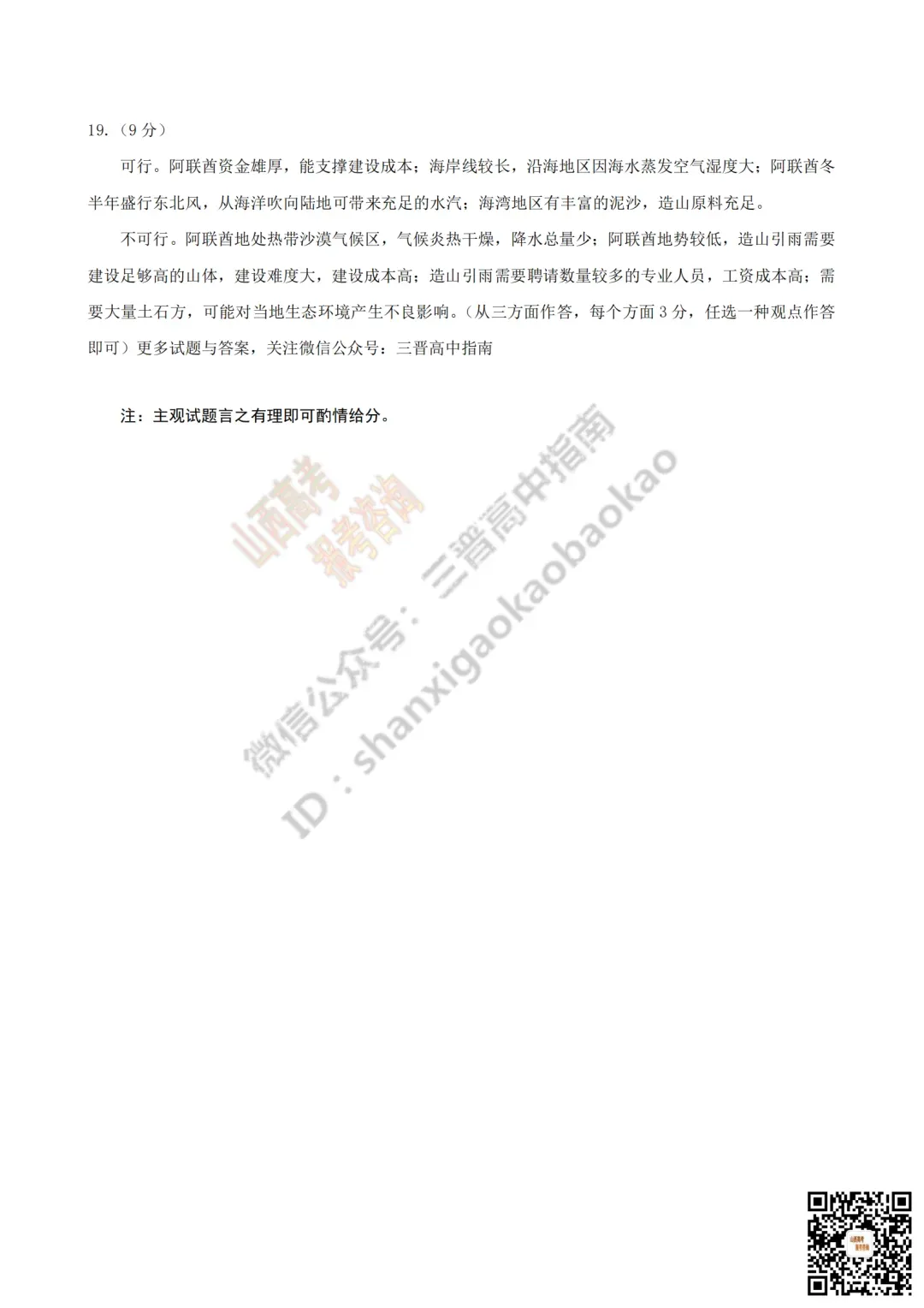 回复“模考21模考22”“模考23”“模考24”或“模考25”,领取2021-2025年相应年份山西各地高考模考试题与答案(高清打印版)