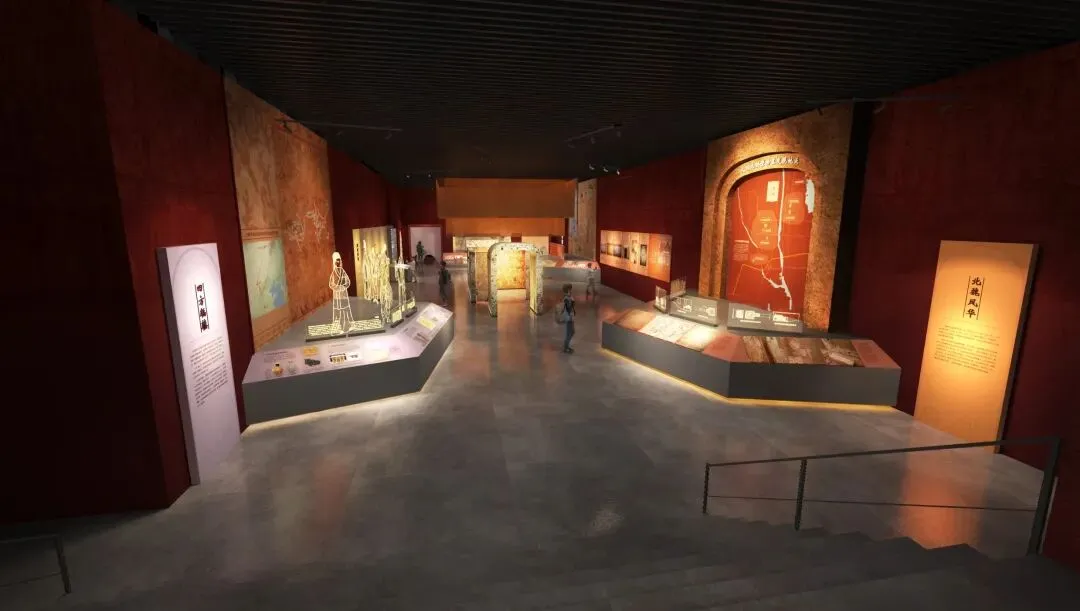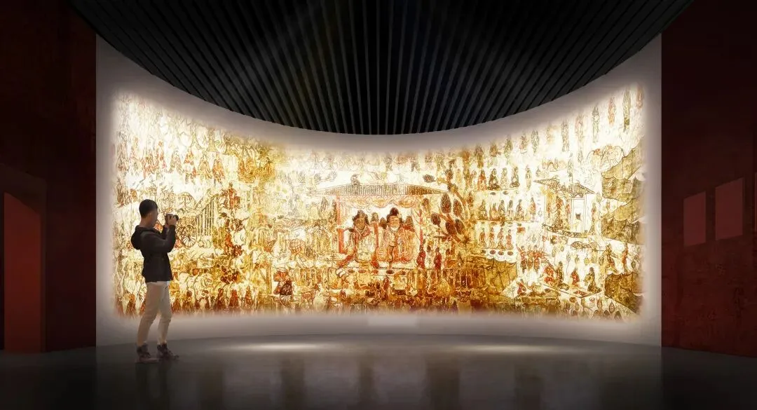 由我团队设计施工的《千年复朝——大同北朝与辽金元壁画艺术展》已顺利竣工。展览以 “千年复朝” 为主题,化用陶渊明“幽室一已闭,千年不复朝”的诗句,将古人对于生死幽闭的叹息,转化为今日考古发掘带来的 古今重逢。这不仅是对历史的回应,更是一次跨越千年的对话,让观众在凝视壁画时,感受到时间与生命的延续。