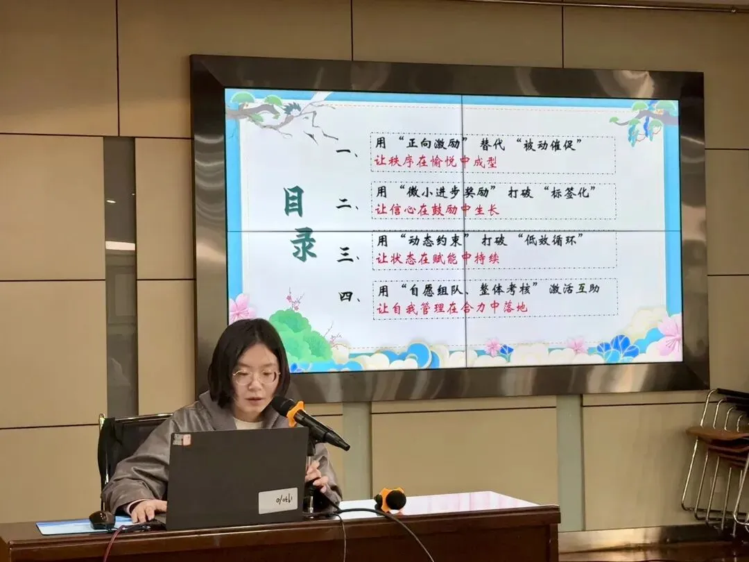 漪汾校区初一年级主任陈相燕肯定了老师们作为政教制度践行者与创新者“有方法、有智慧、有温度”的育人风采,点赞李洁老师的“太外币”实践,称其已成为班级管理与德育提质的有效抓手。