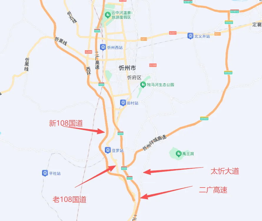 百度地图上国道108线忻州段路线已经更新,开通指日可待。