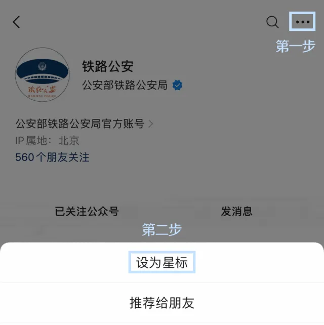 是时候来一波星标了!朋友:如果您想及时收到“铁路公安”的最新文章推送,请一定要将我们设为★星标★账号(如图所示)