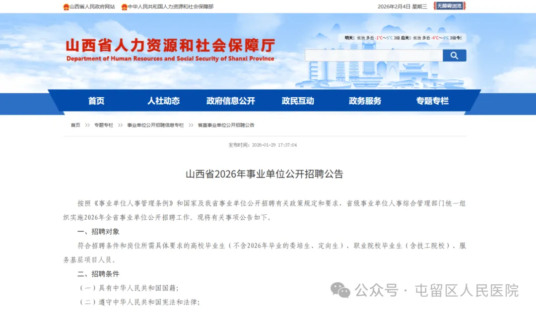 公告原文:2026山西事业单位联考公告正式发布!附完整职位表!