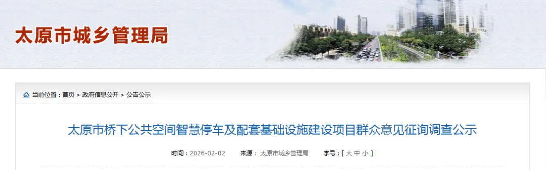 为充分了解社会公众对太原市桥下公共空间智慧停车及配套基础设施建设项目的意见和建议,根据中央、省、市相关文件的要求,现将该项目的基本情况及所涉及的内容进行公示,并征询群众意见。