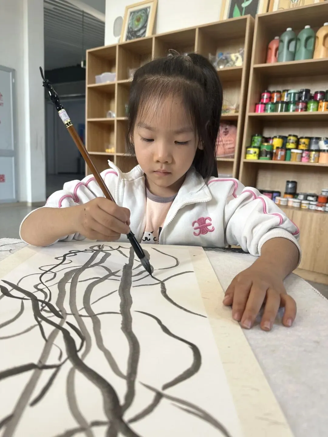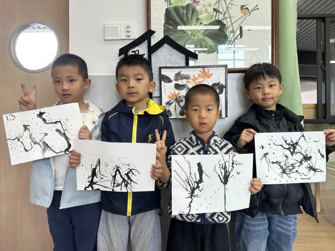 孩子们在活动中感受了水墨的韵味,初步掌握了基础的运笔与墨色控制。他们创作出充满稚拙美的作品,并成功举办了属于自己的“水墨童心”画展,在孩子心中播下了传统美的种子,也让他们在自由创作中获得了满满的自信与成就感!