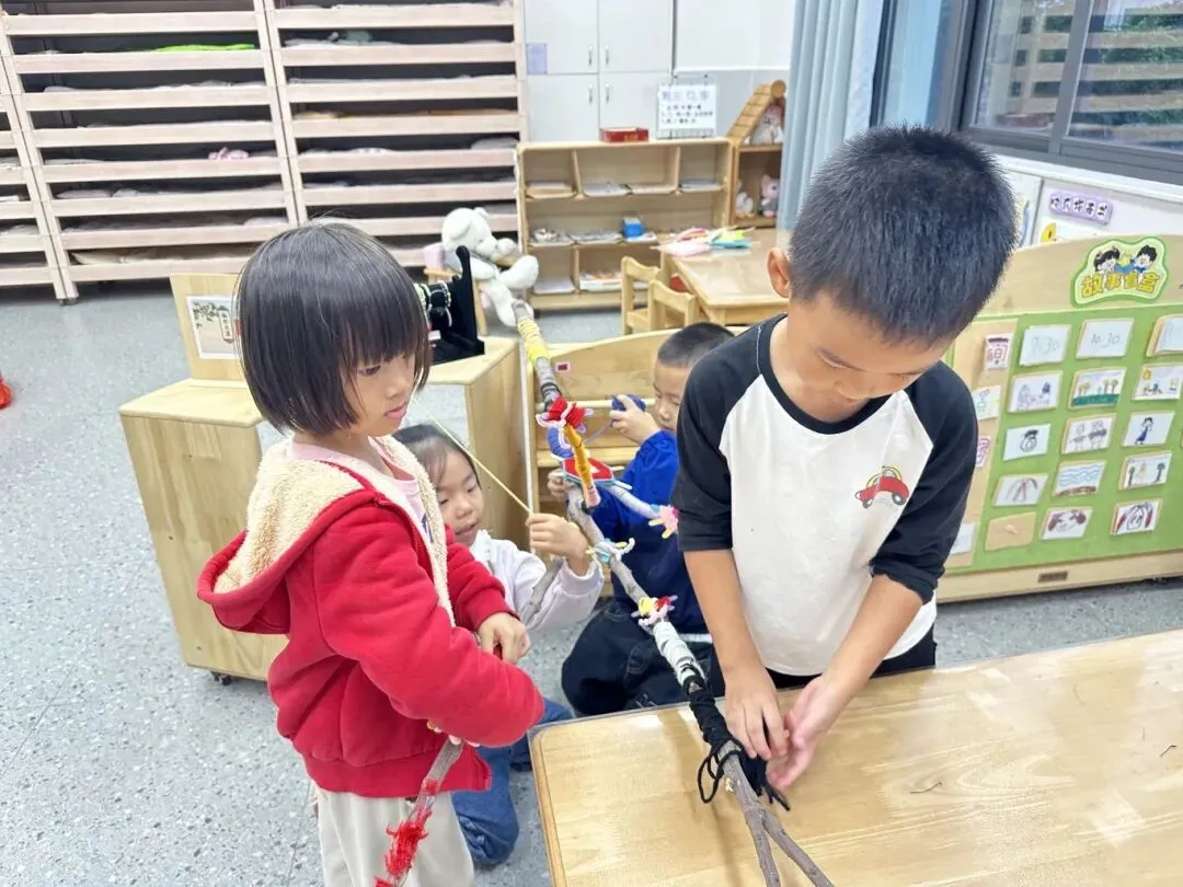 《3-6岁儿童学习与发展指南》明确指出:“要最大限度地支持和满足幼儿通过直接感知、实际操作和亲身体验获取经验的需要。” 围绕这一核心理念,我们设计并开展了一系列趣味盎然的编织活动。活动中,孩子们以好奇心为引,逐步接触编织世界 —— 他们亲手触摸不同质感的毛线、认识多样的编织工具,在教师的引导下尝试绕线、拉线、打结、换线等基础技法,在反复探索与实践中,慢慢解锁编织的多样方法,感受着线条交织的奇妙乐趣。