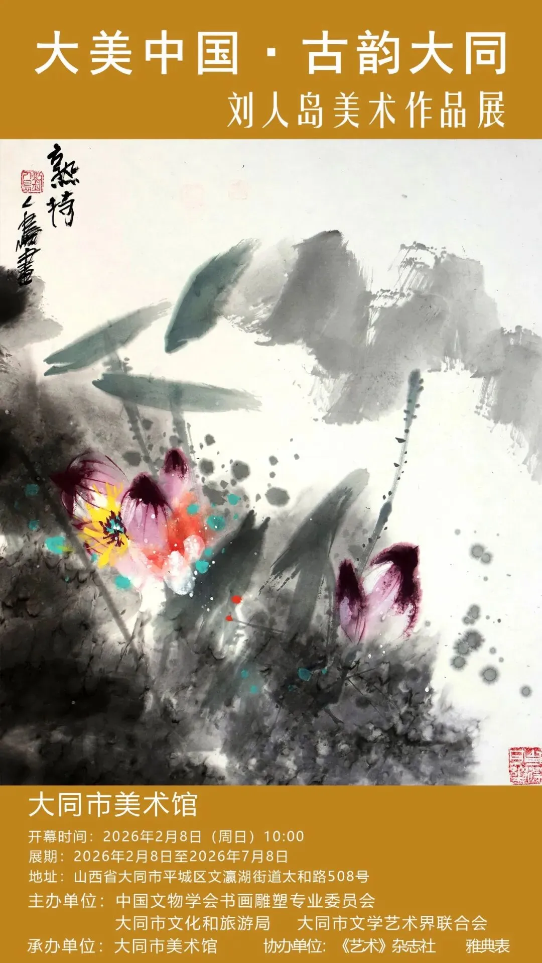 “大美中国·古韵大同——刘人岛美术作品展”既是对艺术家多年创作成果的集中展示,也是献给古都大同的一份艺术厚礼。我们诚挚邀请广大观众走进大同市美术馆,在笔墨山川间感受“大美中国”的辽阔气象,在古韵新章中体悟艺术穿越时空的永恒魅力。