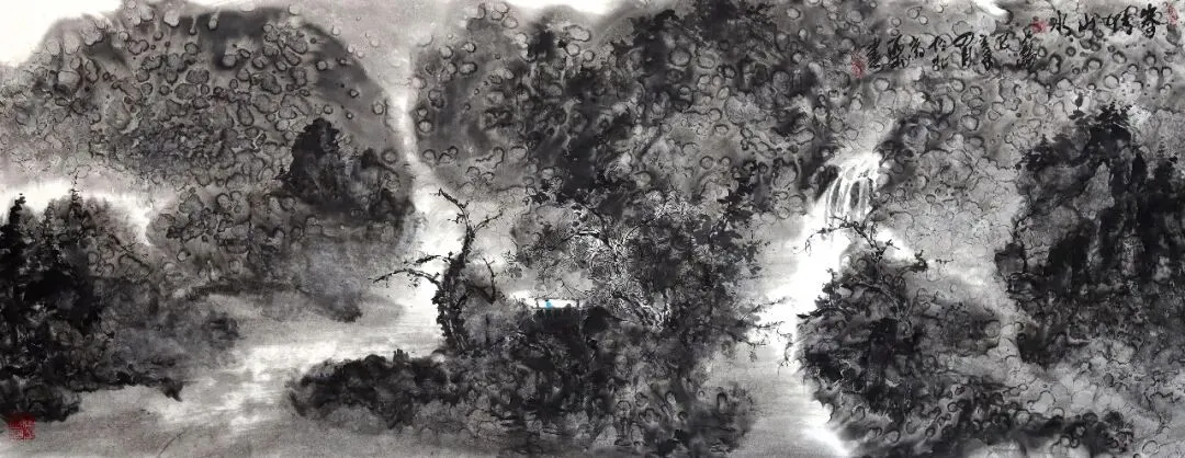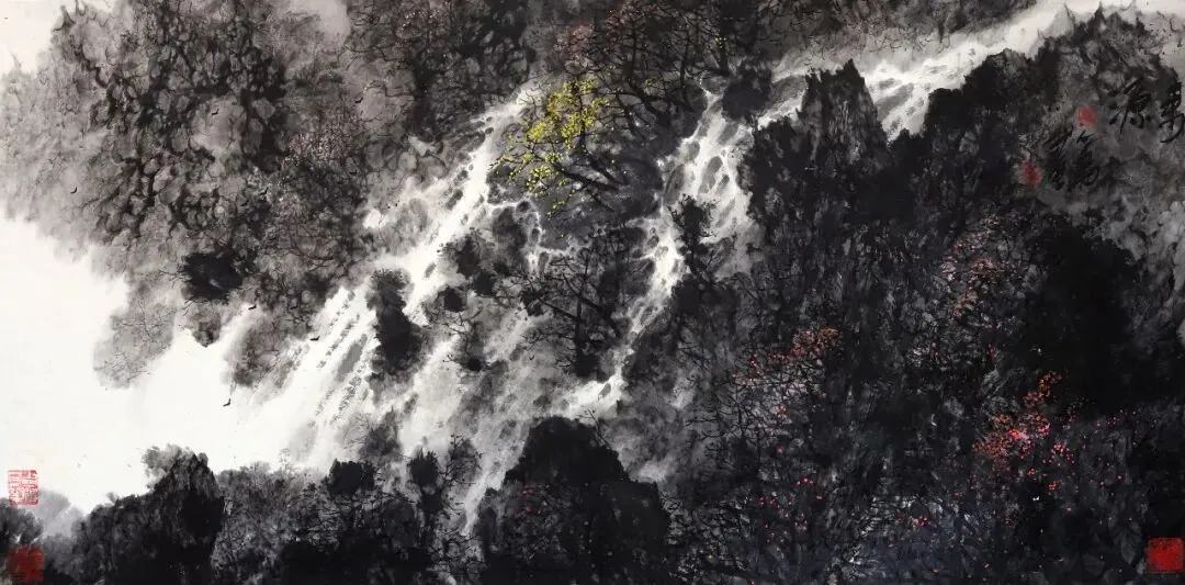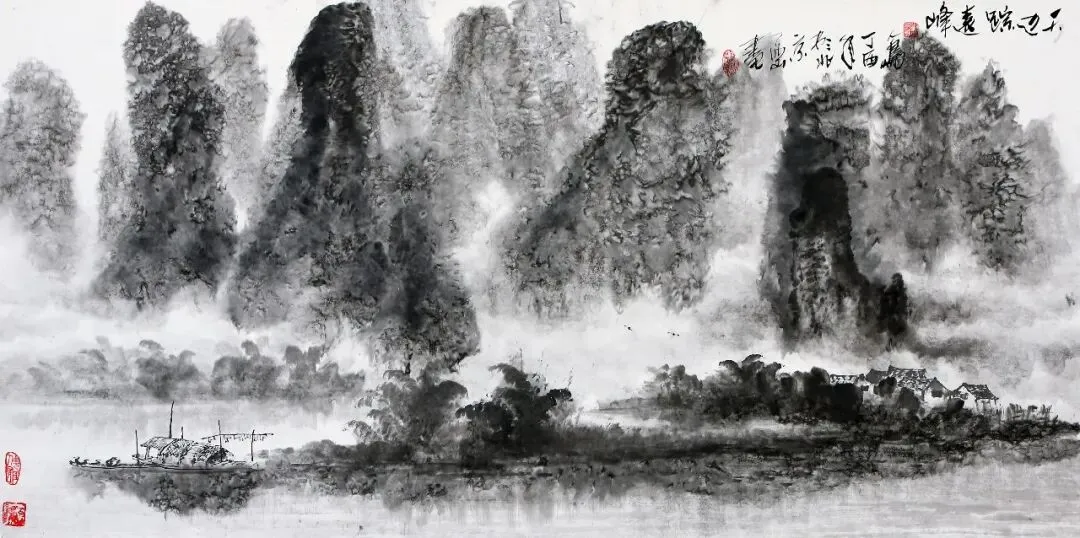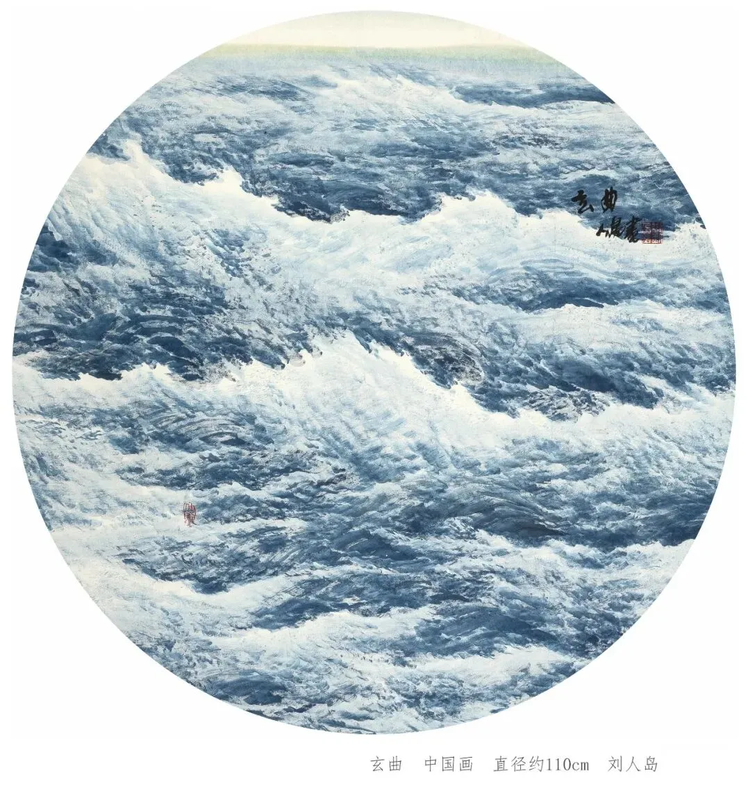 刘人岛先生在长期实践中,形成了独具个性的“人岛皴”与“人岛肌理”,其笔法墨韵在传统基础上融合现代审美,使画面既具山水的雄浑气魄,又富含细腻的情感表达,生动诠释了谢赫六法中“气韵生动”的艺术境界。