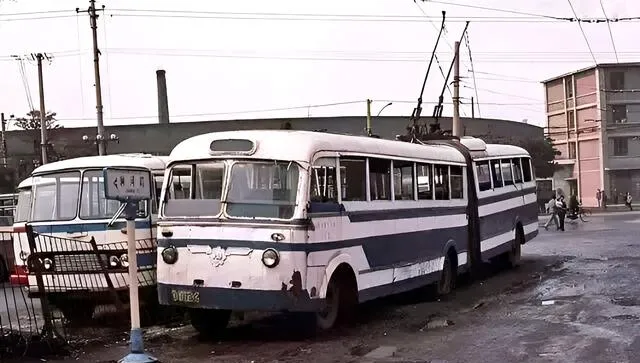 这个长长的家伙叫无轨电车,车顶拖着两条“大辫子”,蓝白涂装,停在站台边喘气似的安静,司机师傅常爬上去摆杆子,风大时还得对准网线,奶奶说坐它不晕,干净又省油,如今电动公交一水儿的新脸,老电车只剩照片里跑了。
