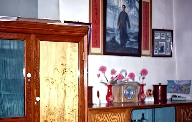这屋里的老柜子是实木的,纹理清清楚楚,台面上摆着玻璃罩闹钟和粉色塑料花,墙上挂着中山装老照片,我外婆最爱收拾台面,擦得溜亮,来客先看这套柜,夸一声“讲究”,现在极简风流行,留一件老柜在家里,也算留住一口老味道。