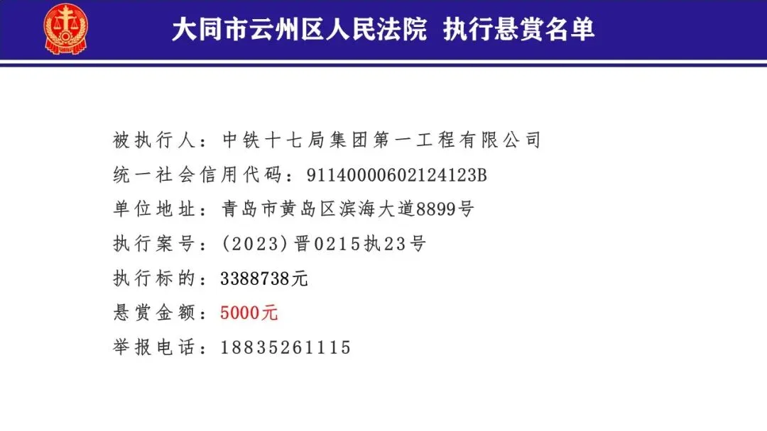 为切实保护债权人的合法权益,打击被执行人规避执行行为,促进社会信用机制的建立,依照《中华人民共和国民事诉讼法》《最高人民法院关于民事执行中财产调查若干问题的规定》《最高人民法院关于依法制裁规避执行行为的若干意见》等相关法律规定,本院依申请执行人申请发布悬赏公告,对被执行人财产线索提供者予以奖励,如提供的线索是本院未掌握或者申请执行人未提供,经查证属实并据已实际控制被执行人及财产的,本院将按照申请执行人的承诺给予举报人奖励。