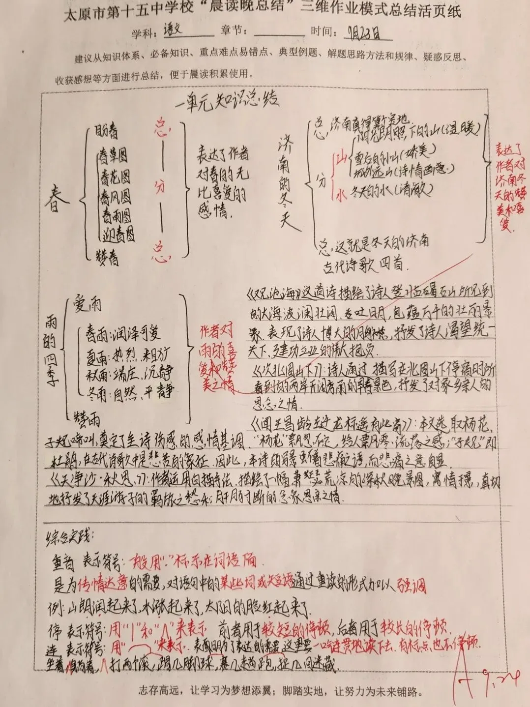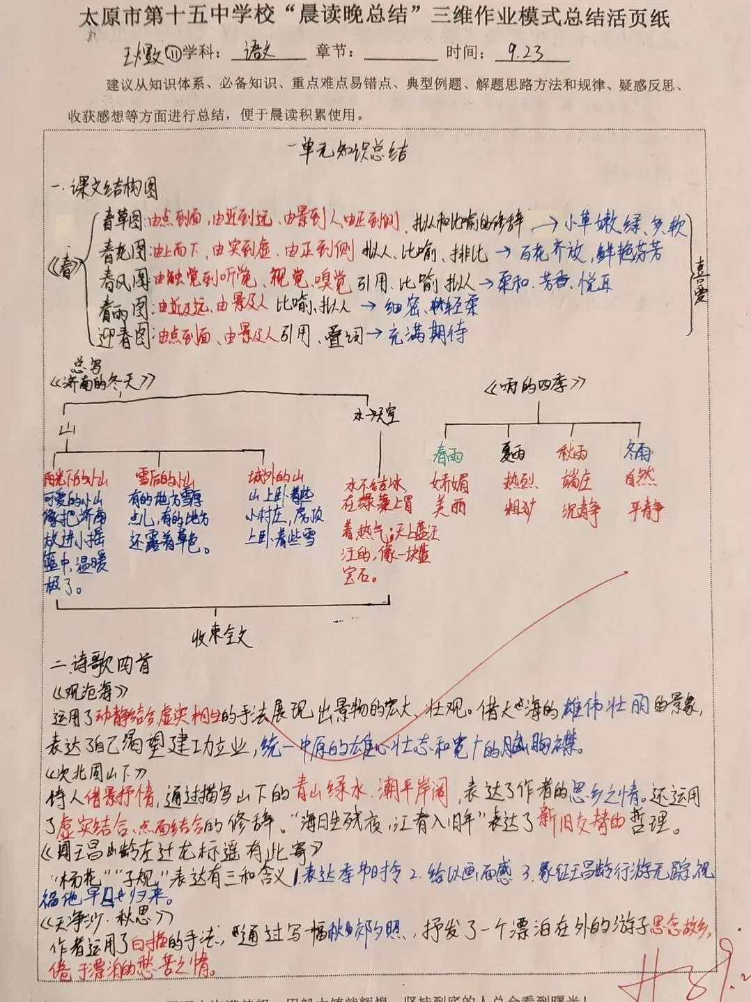 初中寄宿班实行“晨读晚总结”三维作业,即作业本、错题本、总结本(活页形式),帮助学生养成良好习惯、提升思维能力、提高学业成绩、发展核心素养。规范组织毕业年级期末学业诊断,规范考务组织,确保过程严肃性;规范阅卷评分,确保结果公正性;强化数据复盘,确保诊断实效性;做好结果运用,确保备考精准性;加强家校协同,凝聚备考合力。