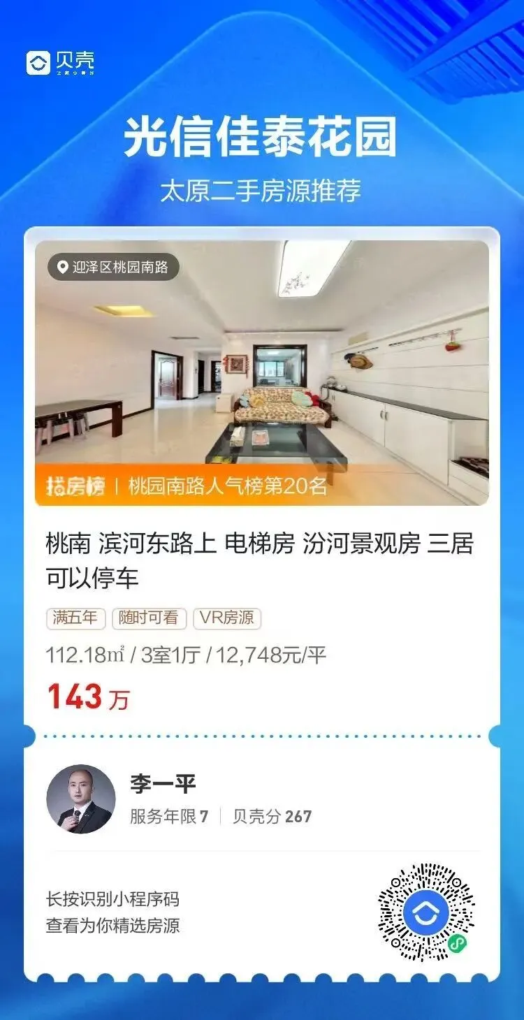 - ① 桃南小学对口,电梯房设计解决老学区房 “无电梯” 痛点,中高楼层可俯瞰汾河;