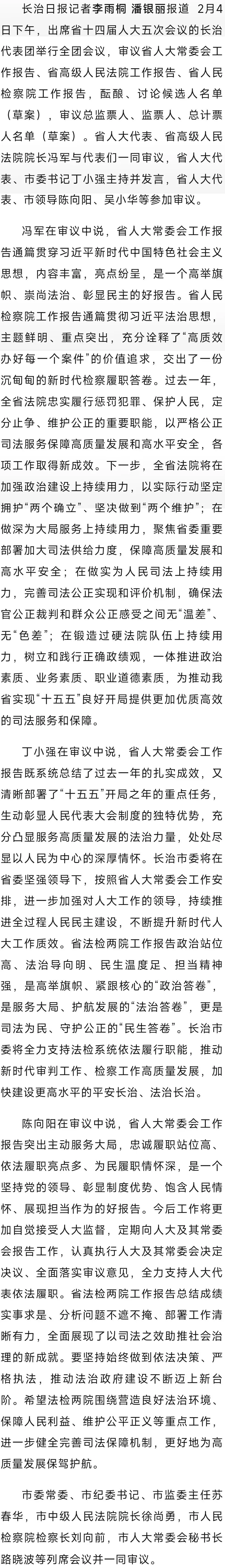 长治代表团审议省人大常委会工作报告、省高级人民法院工作报告和省人民检察院工作报告 丁小强主持并发言 陈向阳吴小华参加