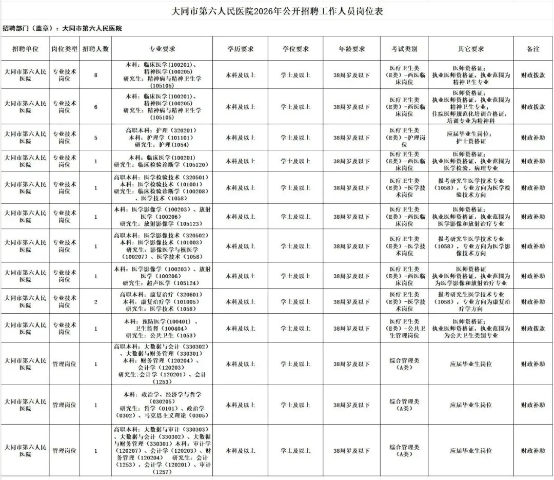 当前位置:首页>大同>大同市第六人民医院2026年公开招聘工作人员