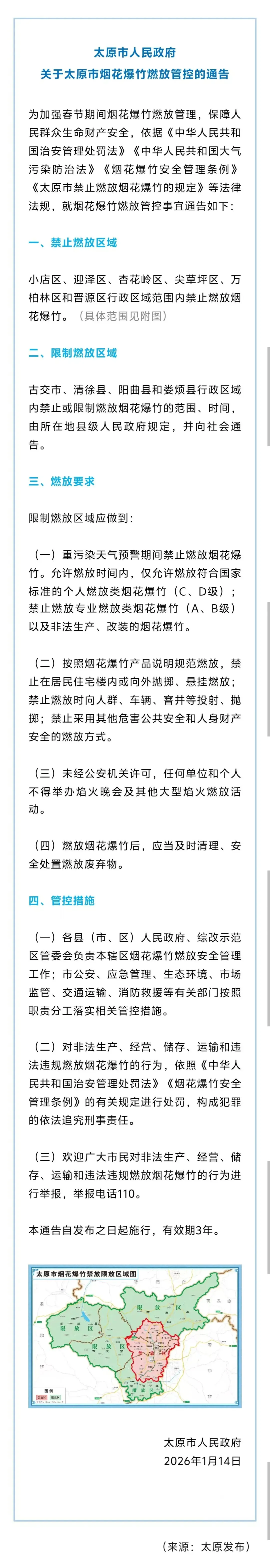 >太原市人民政府关于太原市烟花爆竹燃放管控的通告(转)