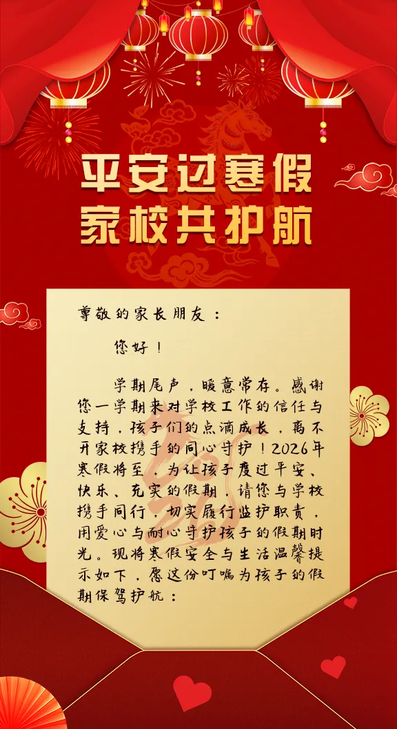 寒假期间,让我们继续携手同心