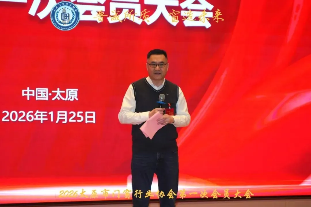 2026年1月25日,太原市门窗行业协会成立大会暨2026行业规范与高质量发展高峰论在太原市温德姆酒店顺利召开。应第六期系统门窗北大高级研修班副班长、太原市门窗行业协会会长、山西力尔盾门窗科技有限公司董事长李长征和全联房地产商会节能门窗协会副秘书长、太原市门窗行业协会副会长、山西太玻玻璃科技有限公司董事长巩星辰的邀请,中国建筑节能协会副会长、全联房地产商会执行监事长孟繁军,中能建筑协会系统门窗分会专家智库名誉组长、系统门窗专家委员会名誉主任邓小鸥,中国建筑节能协会系统门窗分会主任委员、系统门窗专家委员会主任、沈阳乐道建筑科技有限公司总经理胡宝升,中国建筑节能协会副总工程师兼系统门窗分会专家智库执行组长、系统门窗专家委员会执行主任王盛坤,中国建筑节能协会系统门窗分会常务副秘书长、全联房地产商会节能门窗分会常务副秘书长、广州一起干家居科技有限公司总经理易东林,中国建筑节能协会系统门窗分会副秘书长、全联房地产商会节能门窗分会副秘书长、西北门窗产业促进会会长李海庆,中国建筑节能协会系统门窗分会专职副主任委员、全联房地产商会节能门窗分会专职副会长高文红,中国建筑节能协会系统门窗分会专职秘书长、全联房地产商会节能门窗分会专职秘书长姚丽春等系统门窗北大光华高级研修班同学出席了会议。全联房地产商会节能门窗分会副会长、中国建筑节能协会系统门窗分会常务委员、河南众诚门窗有限公司董事长冯勇前,全联房地产商会节能门窗分会副会长、山西迎才物流设备科技有限公司董事长马笑也参加了相关活动。共280多领导和嘉宾出席了本次会议。