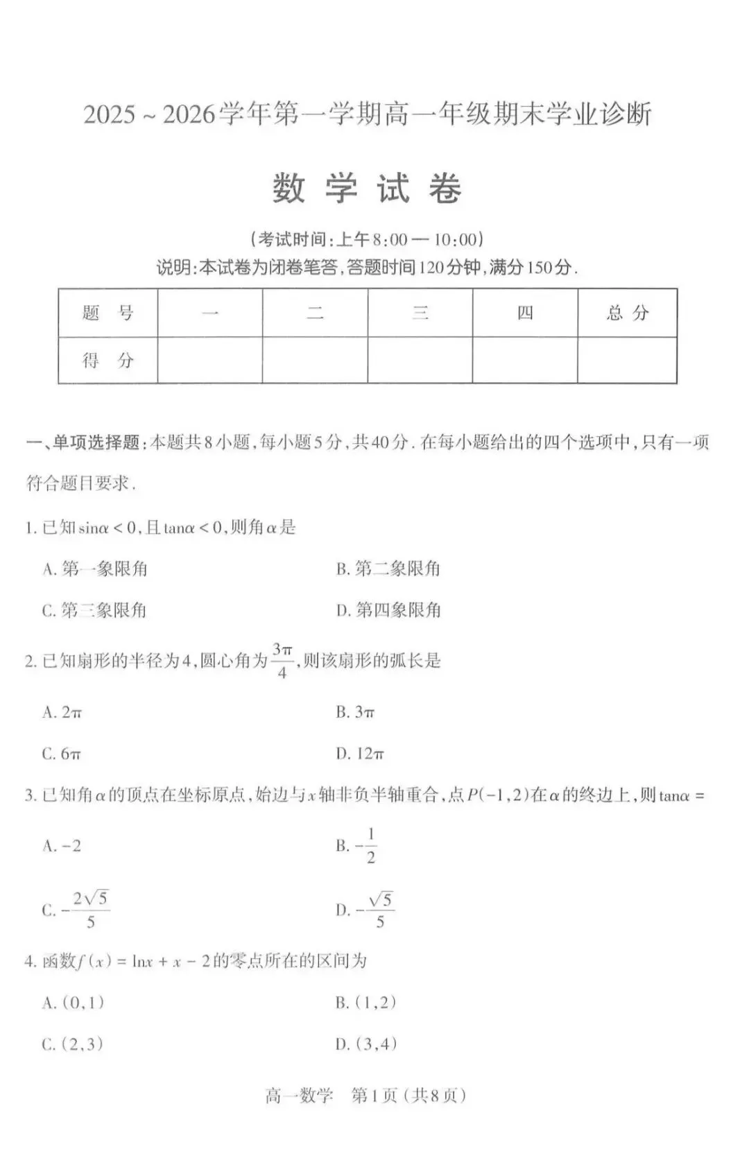 >山西省太原市25-26学年高一上期末数学试卷(必修1期末数学试卷)
