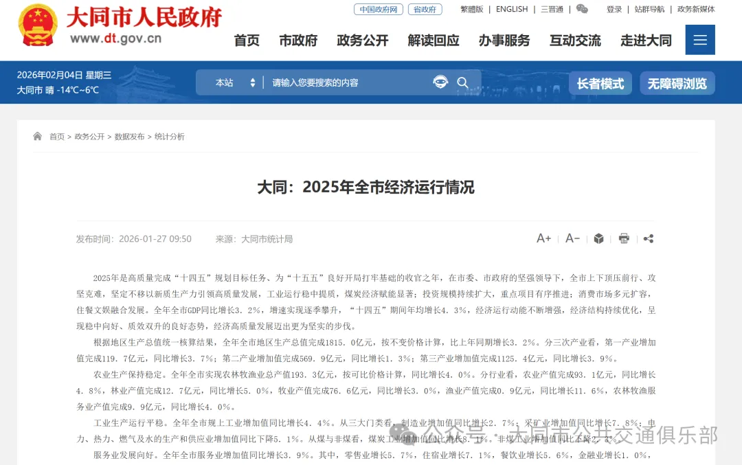 2025年是高质量完成“十四五”规划目标任务、为“十五五”良好开局打牢基础的收官之年,在市委、市政府的坚强领导下,全市上下顶压前行、攻坚克难,坚定不移以新质生产力引领高质量发展,工业运行稳中提质,煤炭经济赋能显著;投资规模持续扩大,重点项目有序推进;消费市场多元扩容,住餐文娱融合发展。全年全市GDP同比增长3.2%,增速实现逐季攀升,“十四五”期间年均增长4.3%,经济运行动能不断增强,经济结构持续优化,呈现稳中向好、质效双升的良好态势,经济高质量发展迈出更为坚实的步伐。