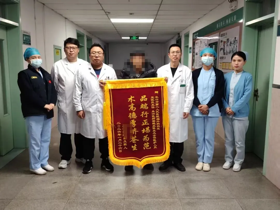 手术中,胸外科主任医师王晓民带领团队在患者右侧腋下胸壁仅开一个3.5厘米的小切口,借助清晰直观的胸腔镜视野,顺利完成“右上肺叶切除+系统纵隔淋巴结清扫术”,整个手术过程流畅,出血量少。术后病理结果显示为右上肺浸润性腺癌,清扫淋巴结转移情况为22/38。得益于单孔微创手术的优势及医院快速康复治疗理念,患者在术后第一天即能下床活动,在全科医护人员的悉心护理下,顺利康复出院。康复出院之际,患者李某亲手将一面绣有“品端行正堪为范 术高德厚济苍生”的锦旗送到医生手中。