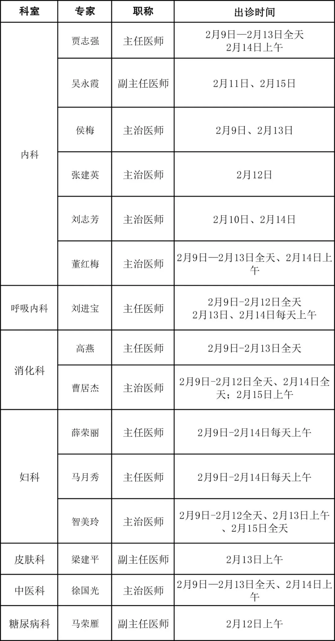 >【大同现代医院(集团)】2月9日-2月15日大同地区各医院专家出诊信息
