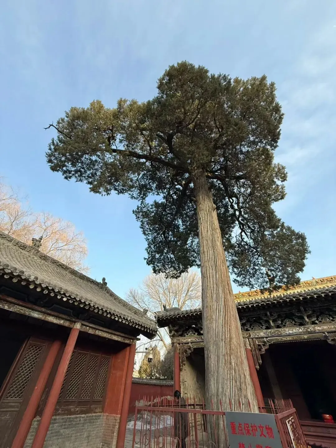 那棵千年古树枝叶婆娑。如千年长者守护着寺院。令人敬畏!